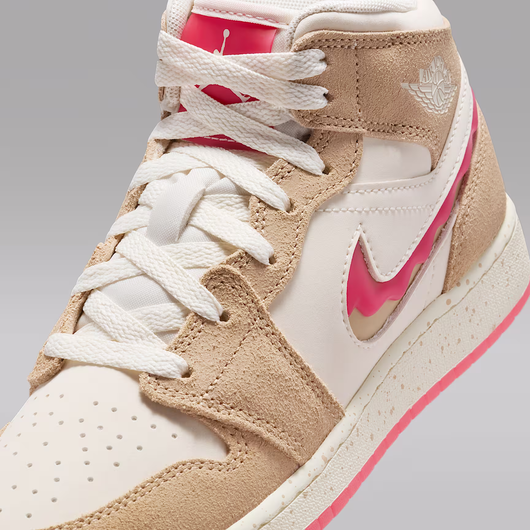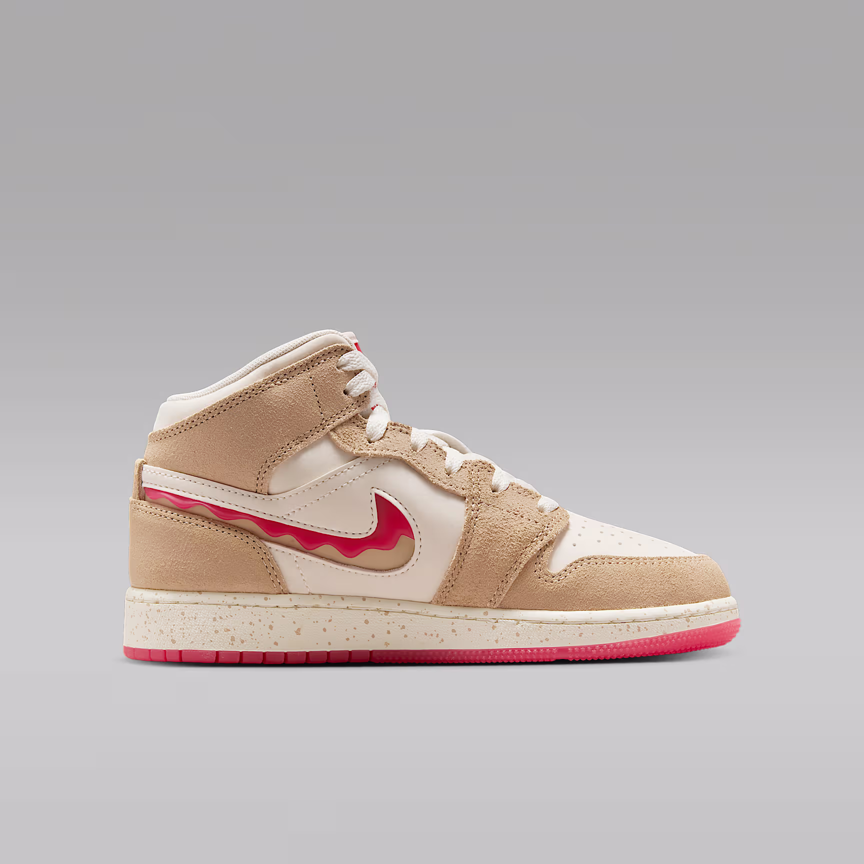 This special edition AJ1 celebrates one of our favourite combos: peanut butter and jelly! Smooth leather and soft suede add mouth-watering style to the sneaker that started it all.
