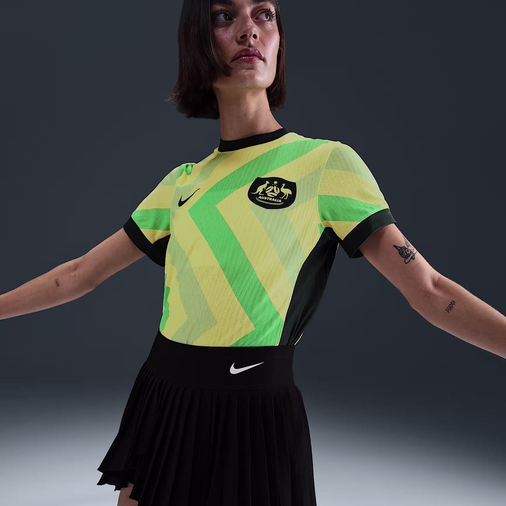 Designed in collaboration with Aboriginal artist Reko Rennie, this authentic shirt celebrates the diverse nations and cultures of the Aboriginal and Torres Strait Islander Peoples. This home shirt uses bold colours and reimagined First Nations imagery to highlight the vibrant multi-culturalism of Australia.