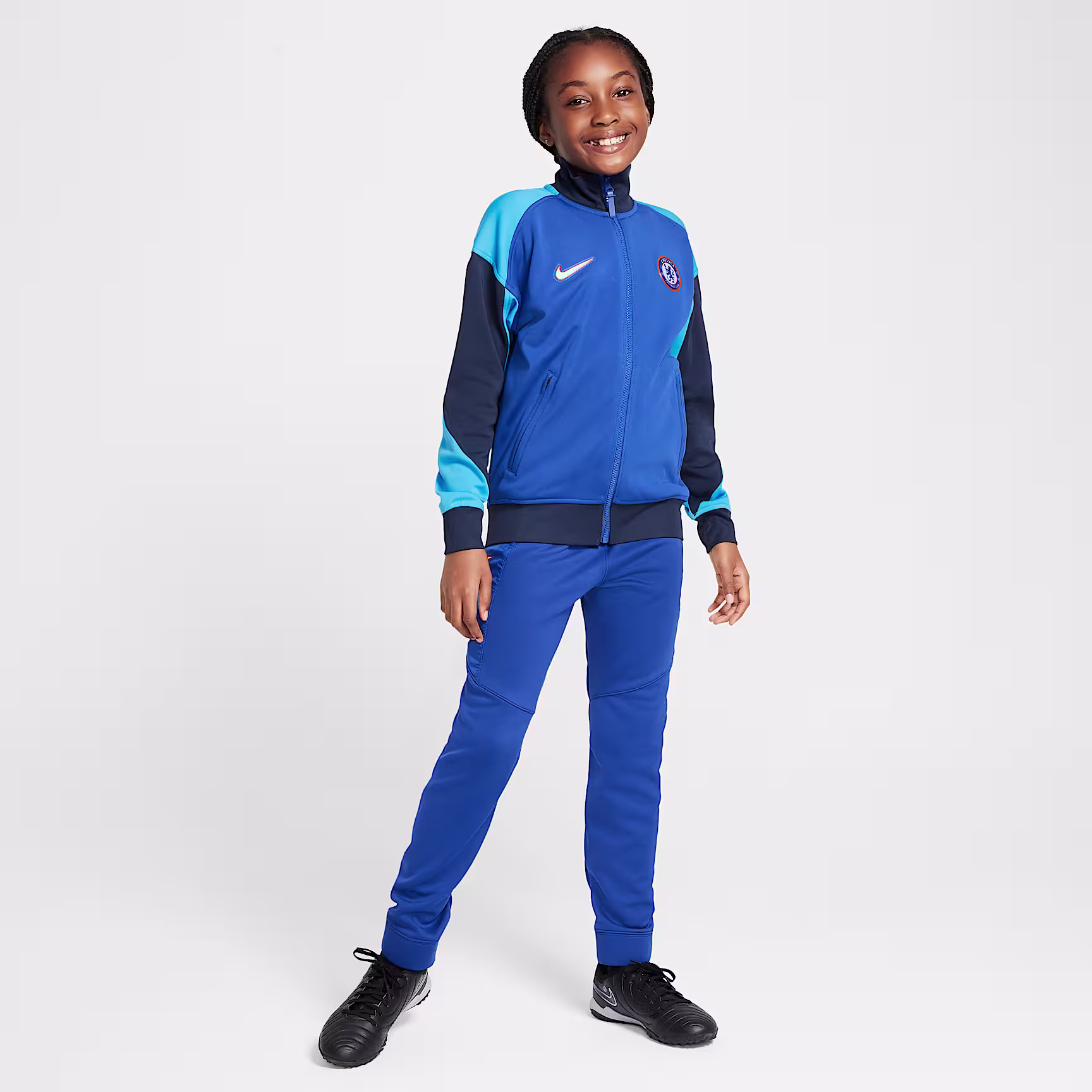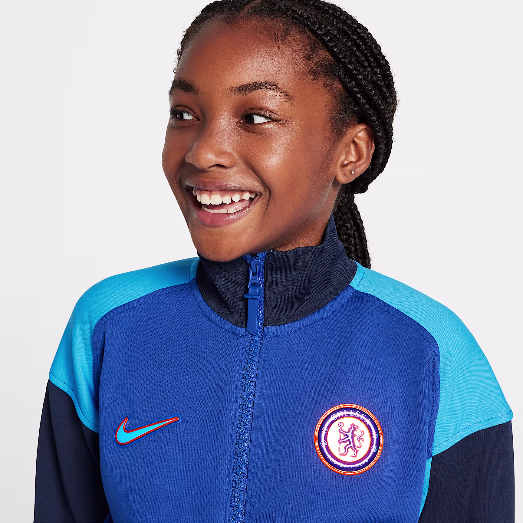Take your skills to the next level with this Chelsea F.C. Academy Pro jacket. Sweat-wicking technology in a roomy fit is paired with a woven crest to give you comfortable coverage that lets you show your team pride.