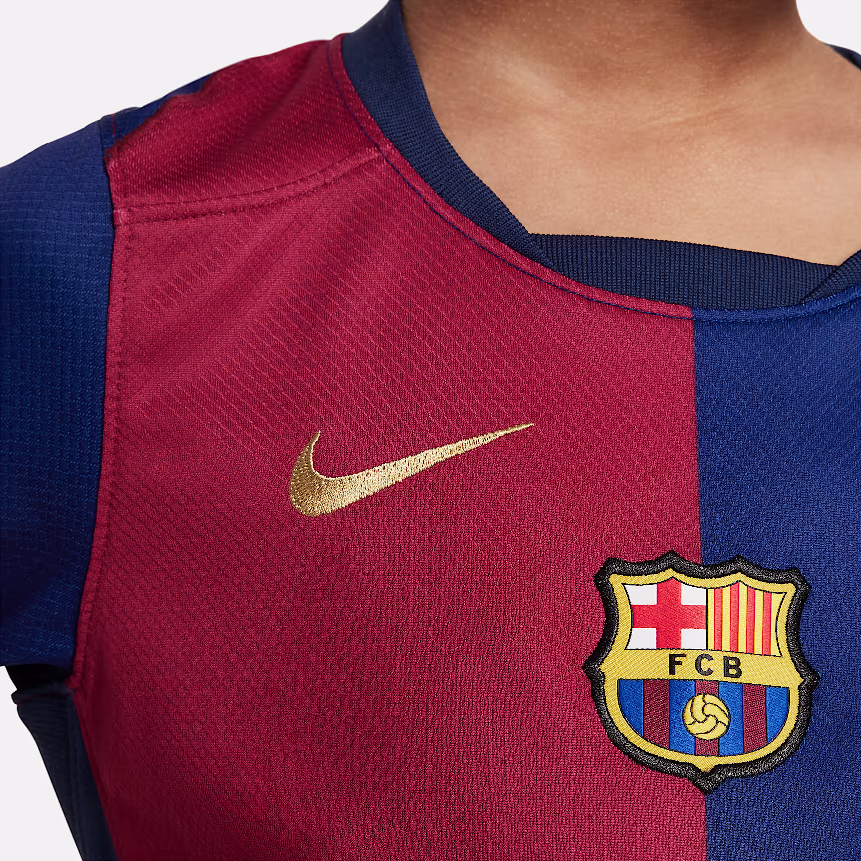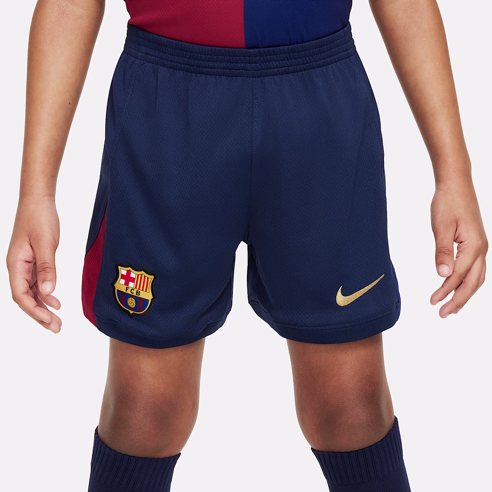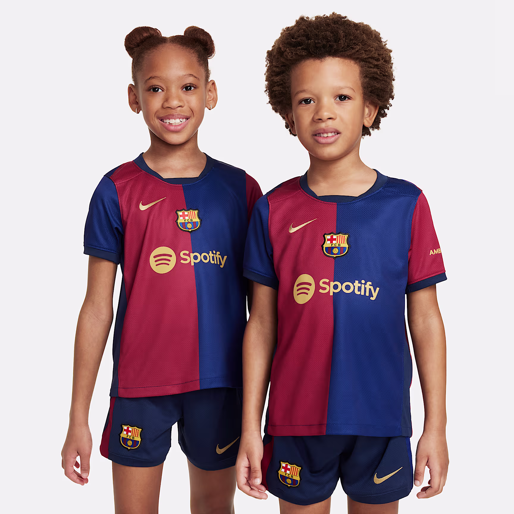 Outfit future little stars in full with this three-piece kit that includes a team shirt with matching shorts and socks. Inspired by what the pros wear during play, our Stadium Collection has lightweight, sweat-wicking fabric to help keep young athletes comfortable while they zoom, scurry or play. This shirt carries the same Spotify logo as prior FCB kits.