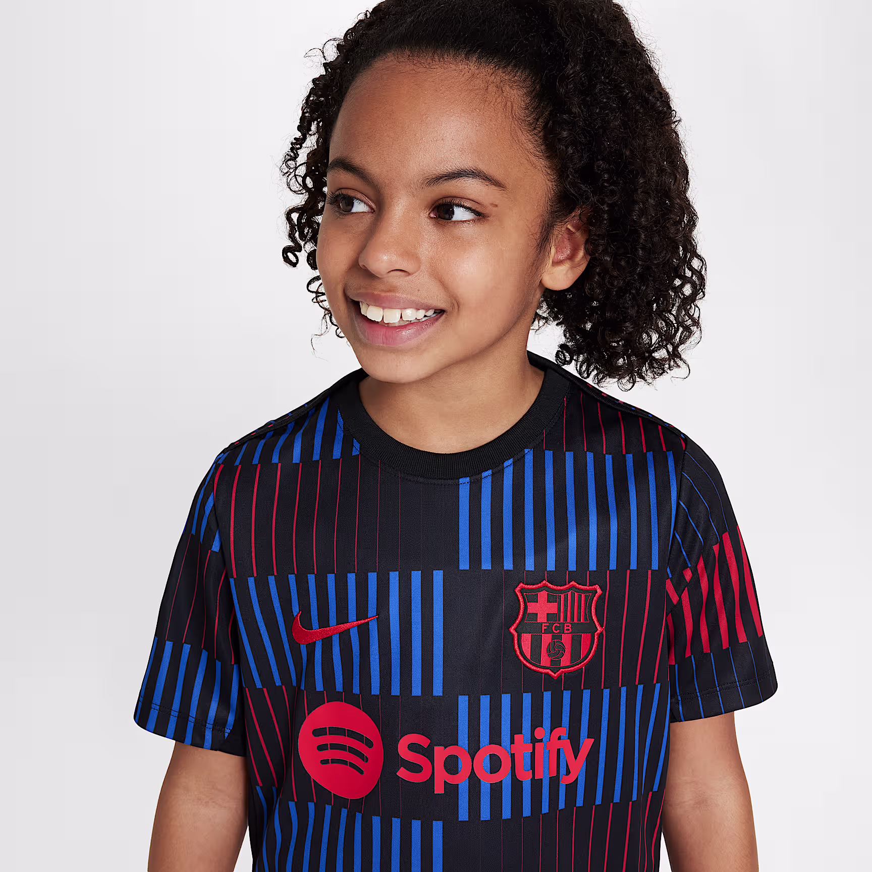 After conquering the basics, take your skills to the next level. A classic, relaxed fit works together with moisture-wicking technology to help keep you cool when play heats up. Warm up like your heroes in this F.C. Barcelona pre-match top. This shirt carries the same Spotify logo as prior FCB kits.