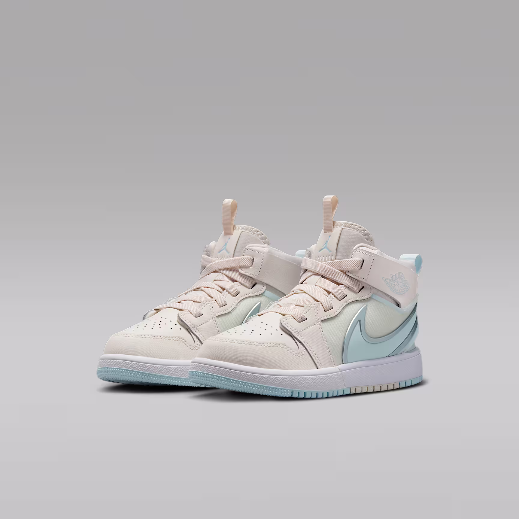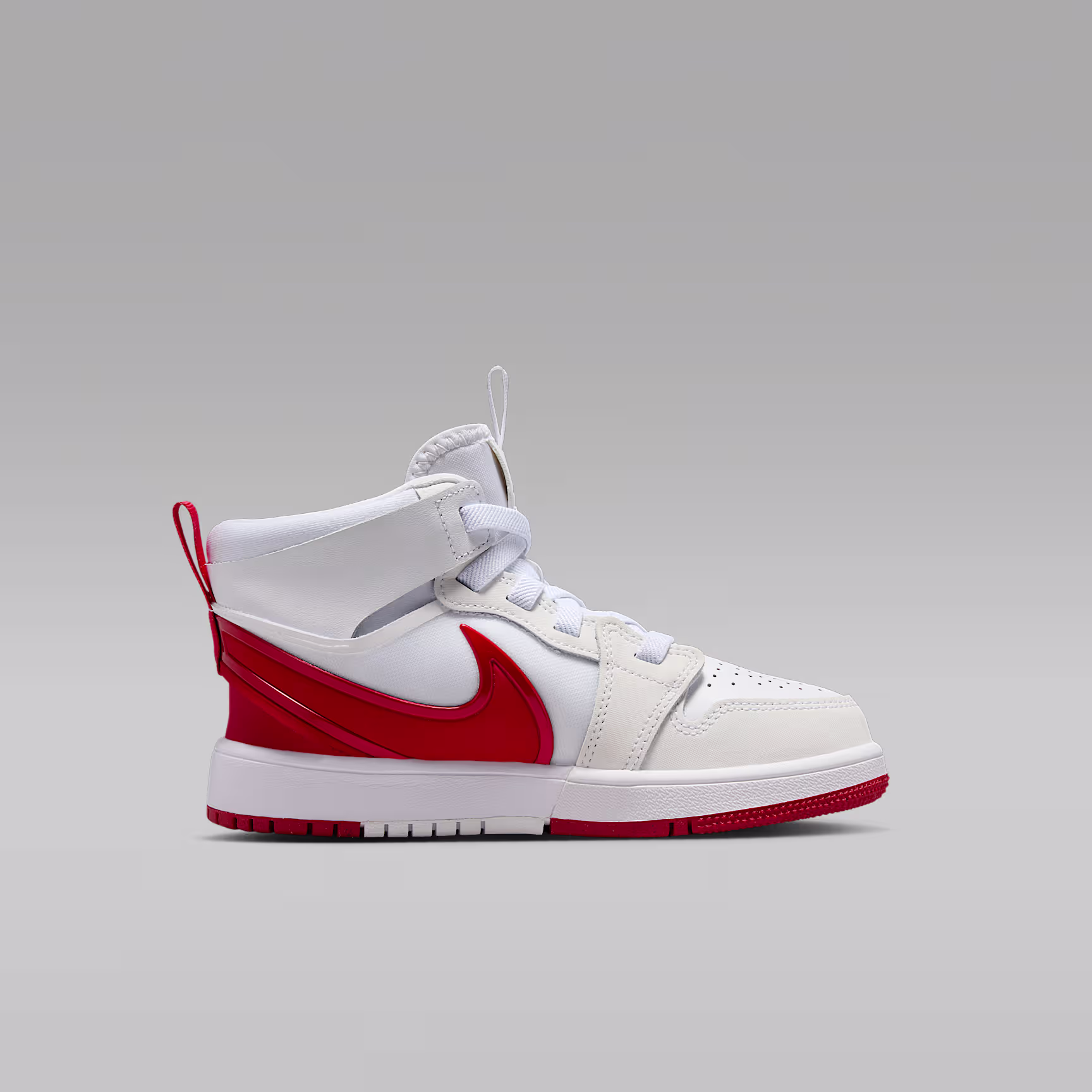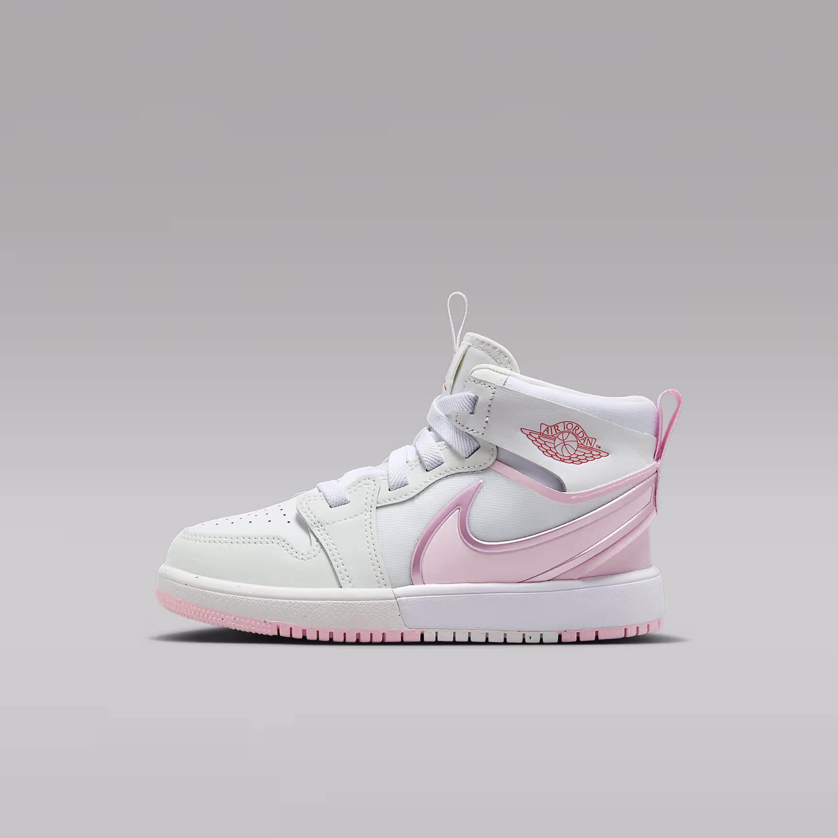 What makes a good-looking pair of Js even better? A quick, hands-free way for kids to put them on. Meet the Jordan 1 EasyOn. Its wide, flexible collar is designed to bend over the heel, allowing kids to easily step into these. A metallic Swoosh logo adds eye-catching style, because your little one deserves to shine.