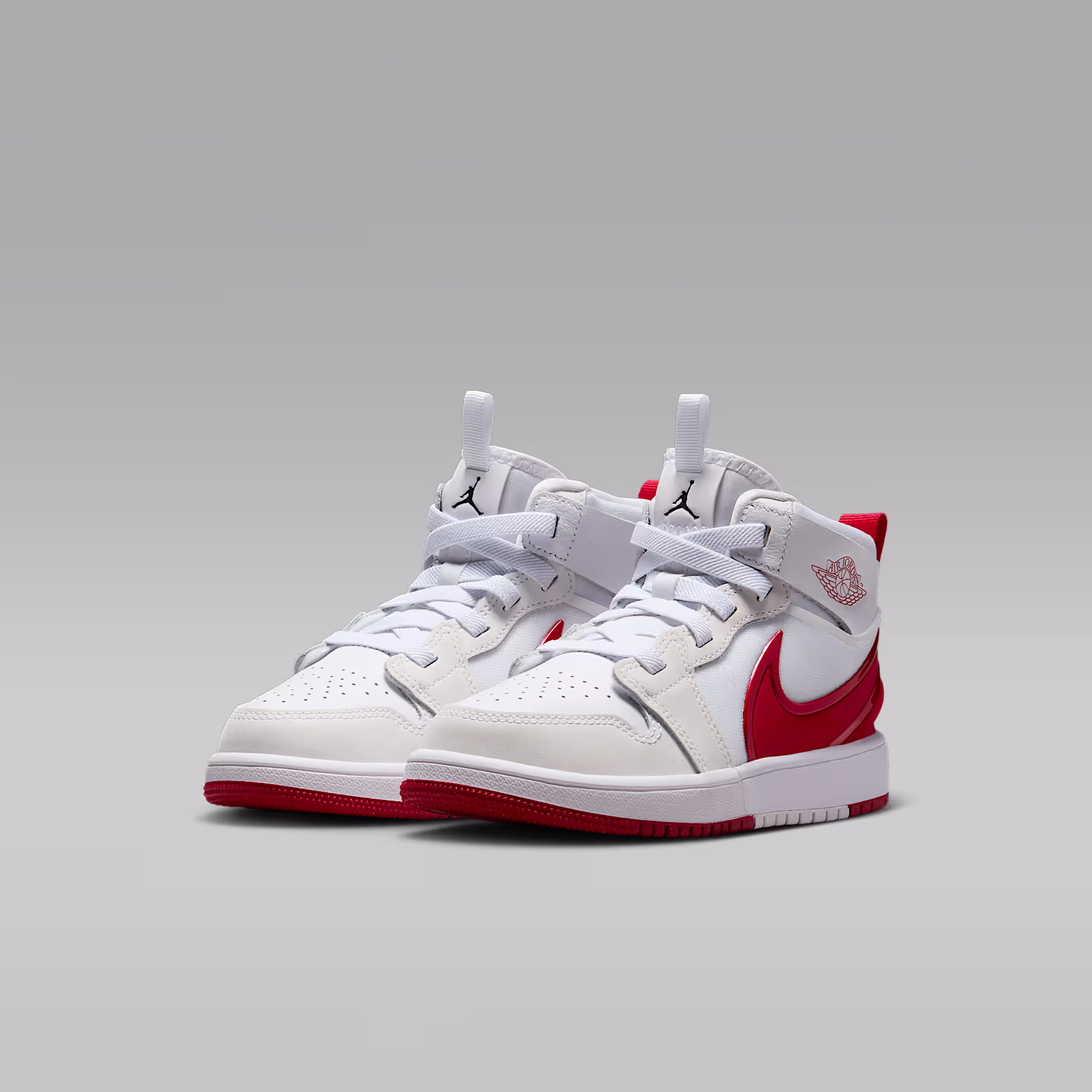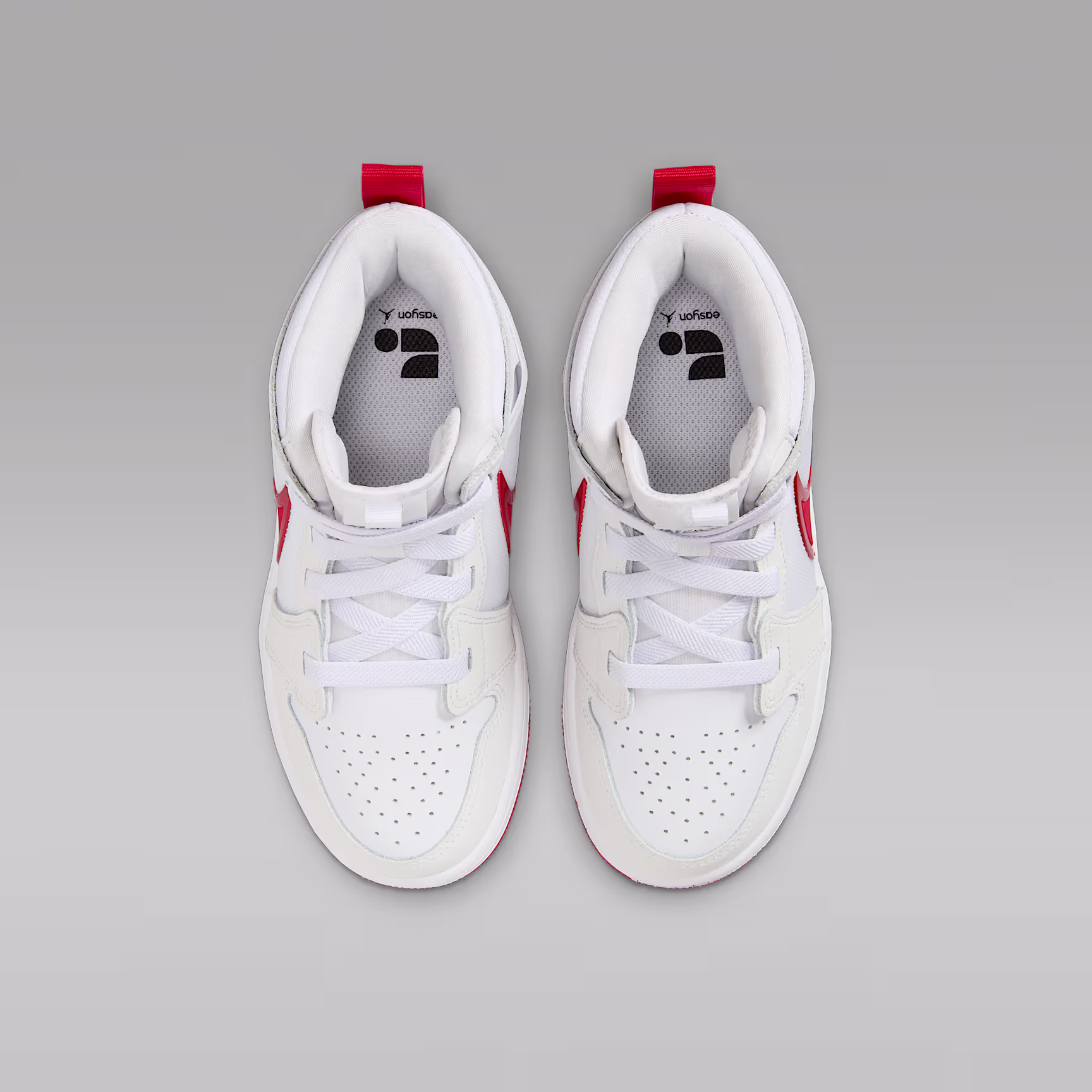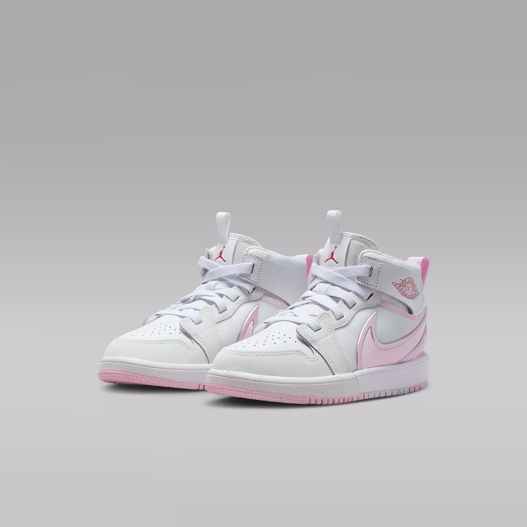 What makes a good-looking pair of Js even better? A quick, hands-free way for kids to put them on. Meet the Jordan 1 EasyOn. Its wide, flexible collar is designed to bend over the heel, allowing kids to easily step into these. A metallic Swoosh logo adds eye-catching style, because your little one deserves to shine.