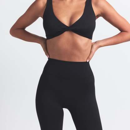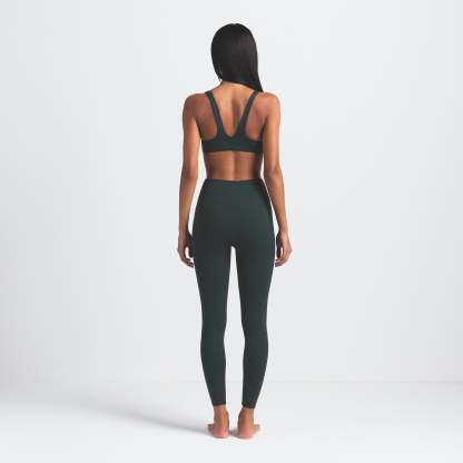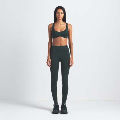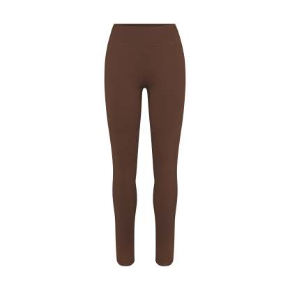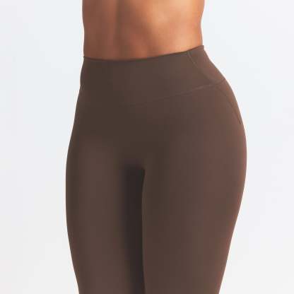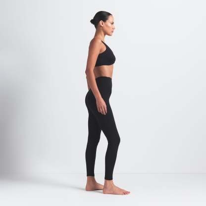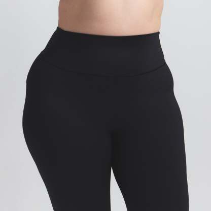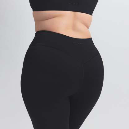 High-waisted, Thick double layered waistband, Side dart detail, V-shape seams to accentuate butt shape, Silicone matte logo at center back, 100% Cotton gusset, Fits tight to body, 7/8 length