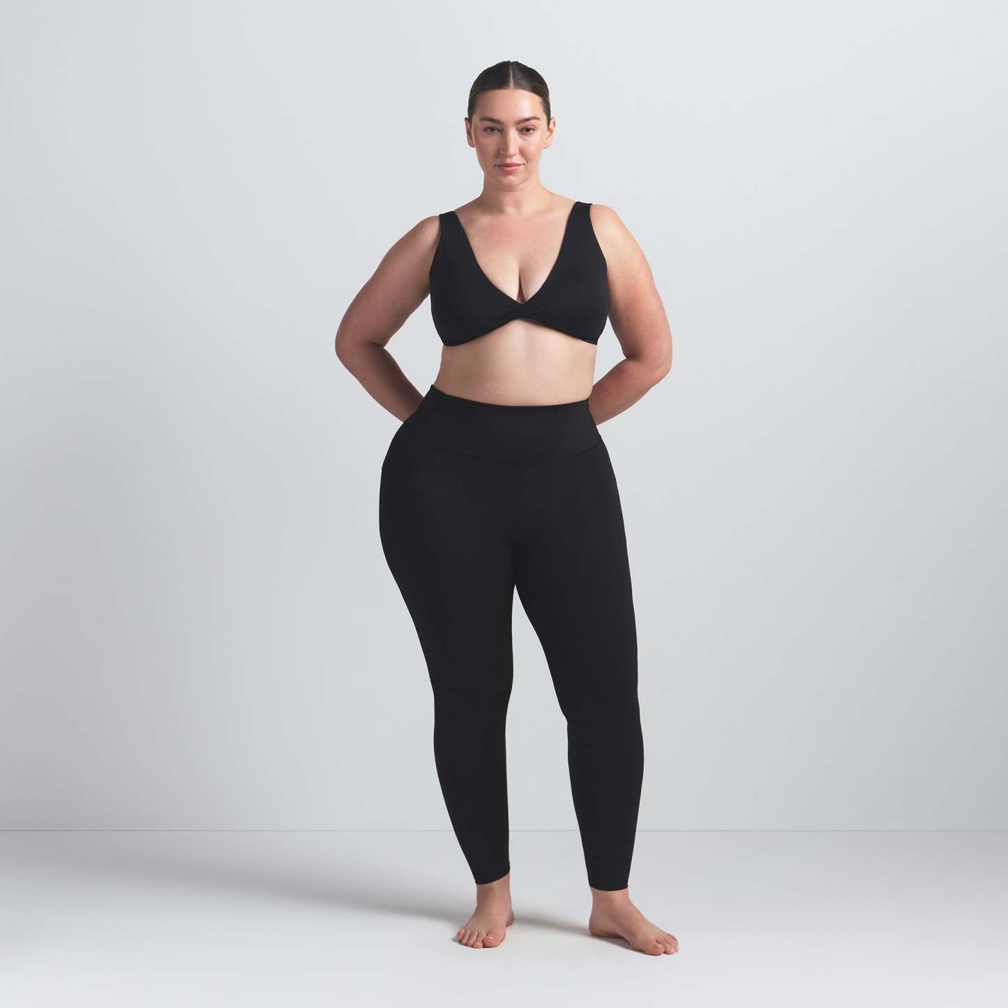 Alyson is size 0, 32A, and 5’9” (175cm), wearing SKIMS XS
