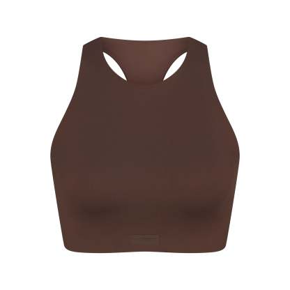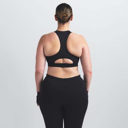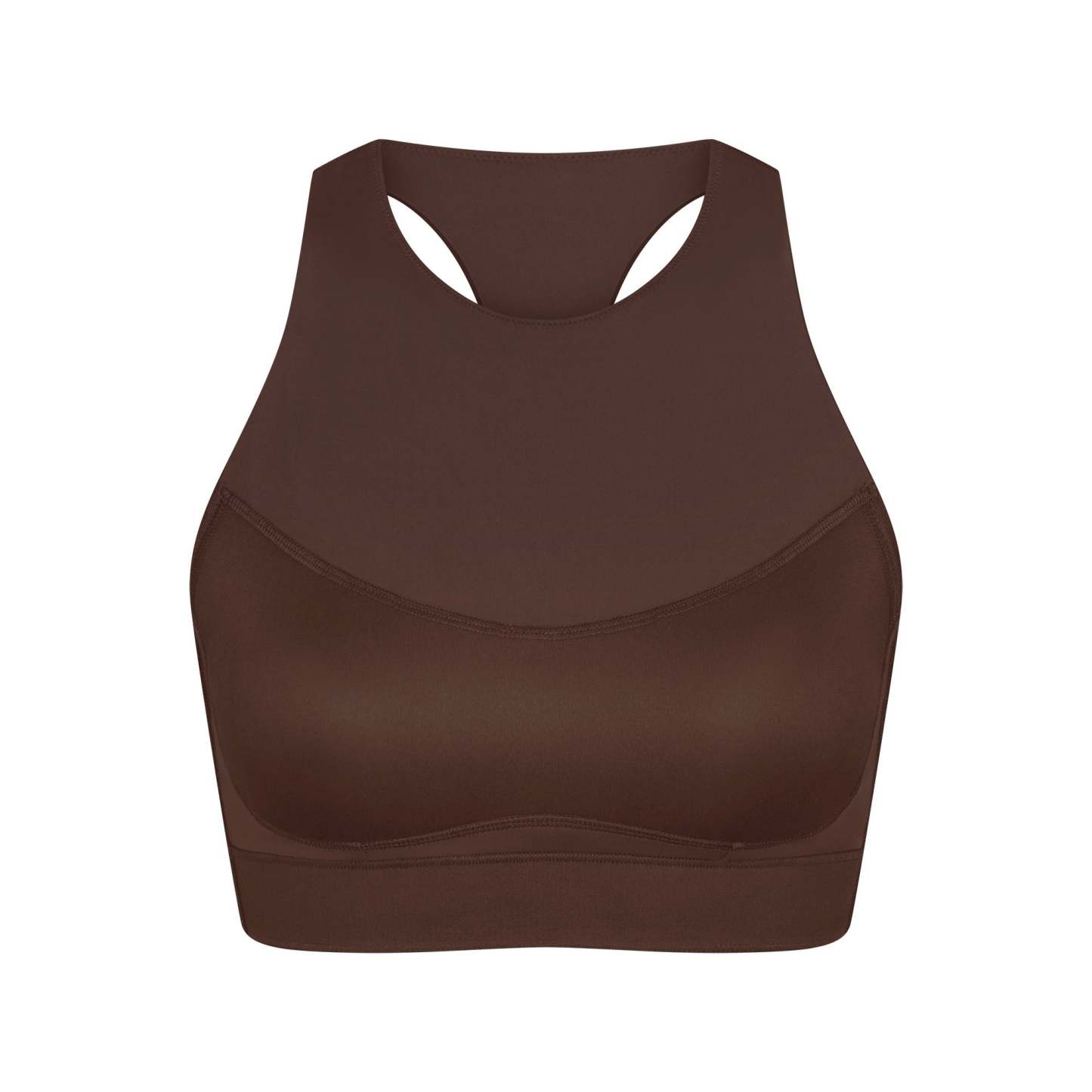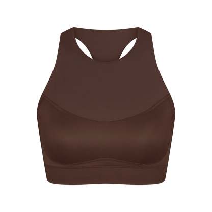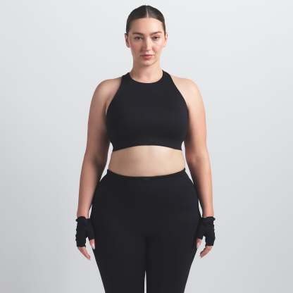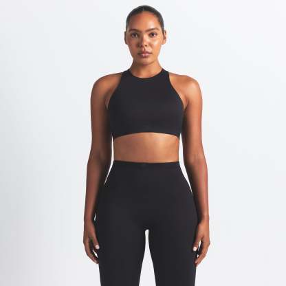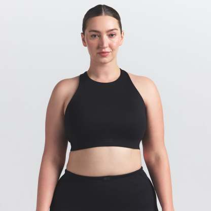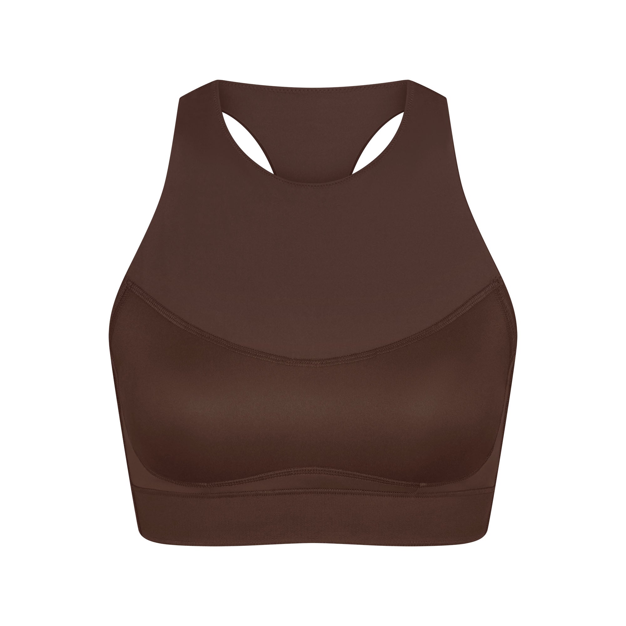 Offering high support, this bra has built-in pads that mold to you. Its racerback design, high neck, and internal bonded panels provide extra support and coverage while our sculpting Matte fabric and sweat-wicking Nike Dri-Fit™ technology make it a go-to for high-impact workouts and all-day wear.