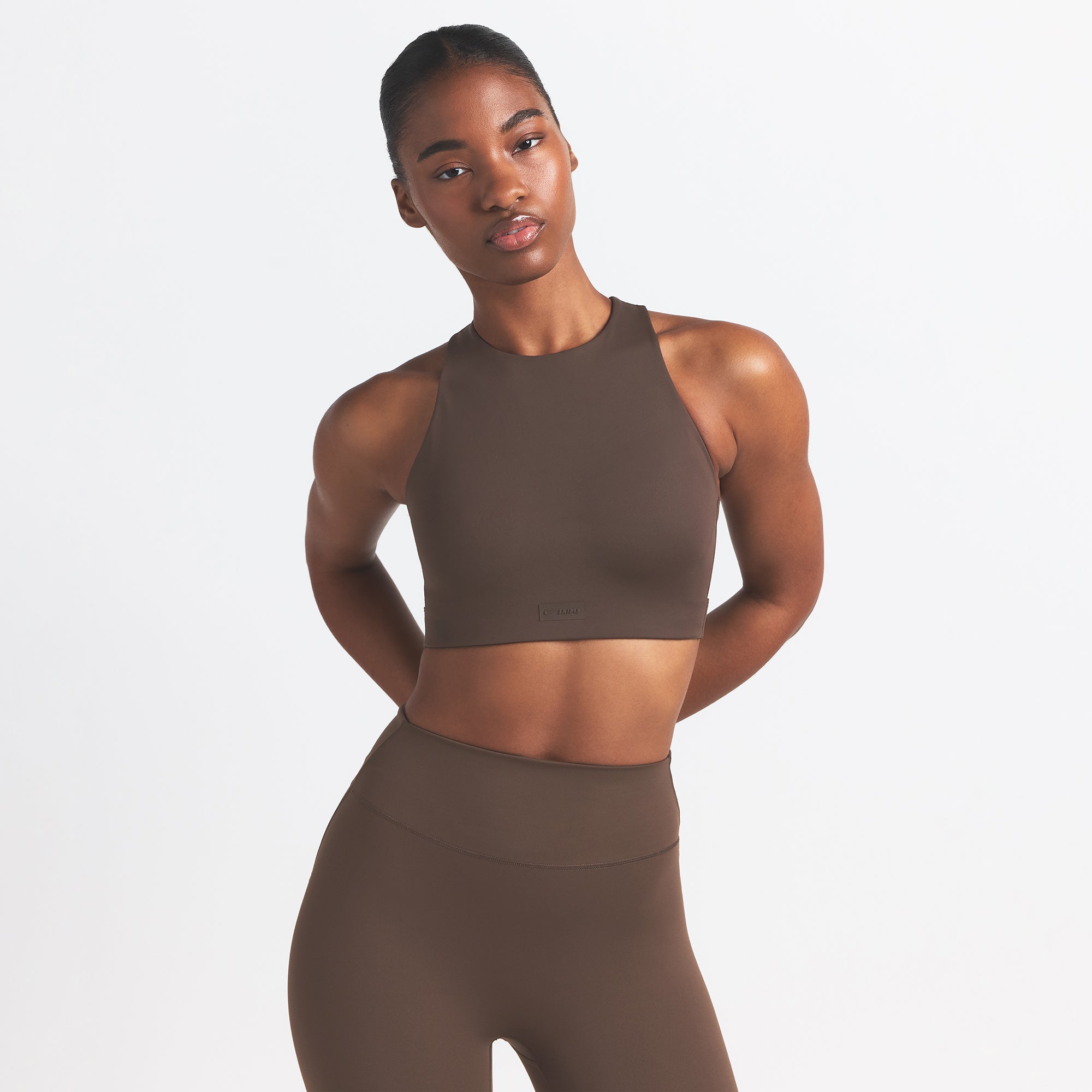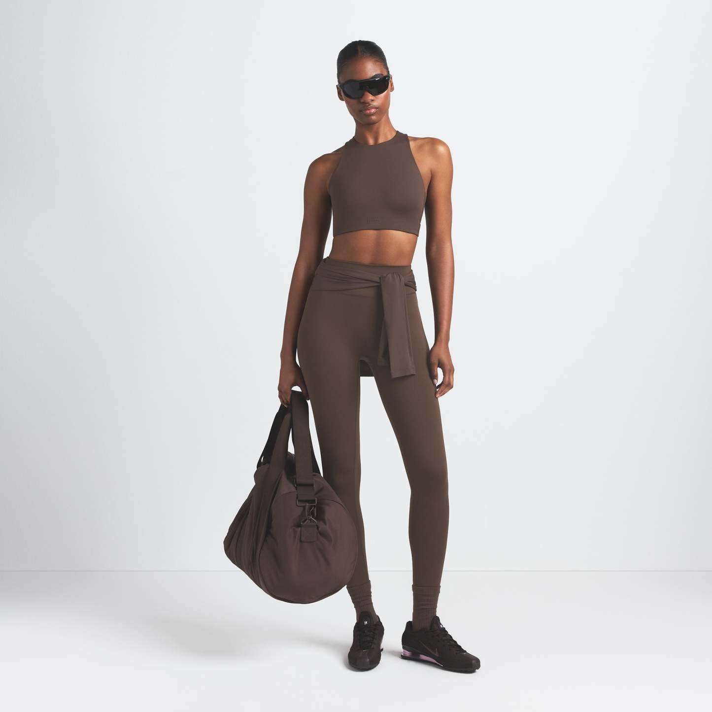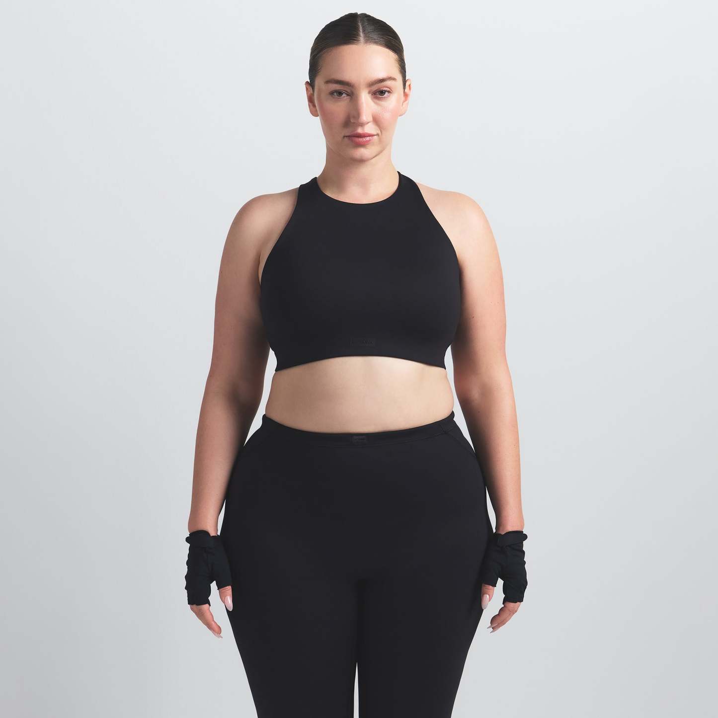 Offering high support, this bra has built-in pads that mold to you. Its racerback design, high neck, and internal bonded panels provide extra support and coverage while our sculpting Matte fabric and sweat-wicking Nike Dri-Fit™ technology make it a go-to for high-impact workouts and all-day wear.