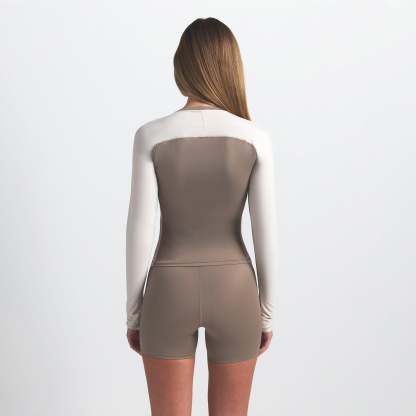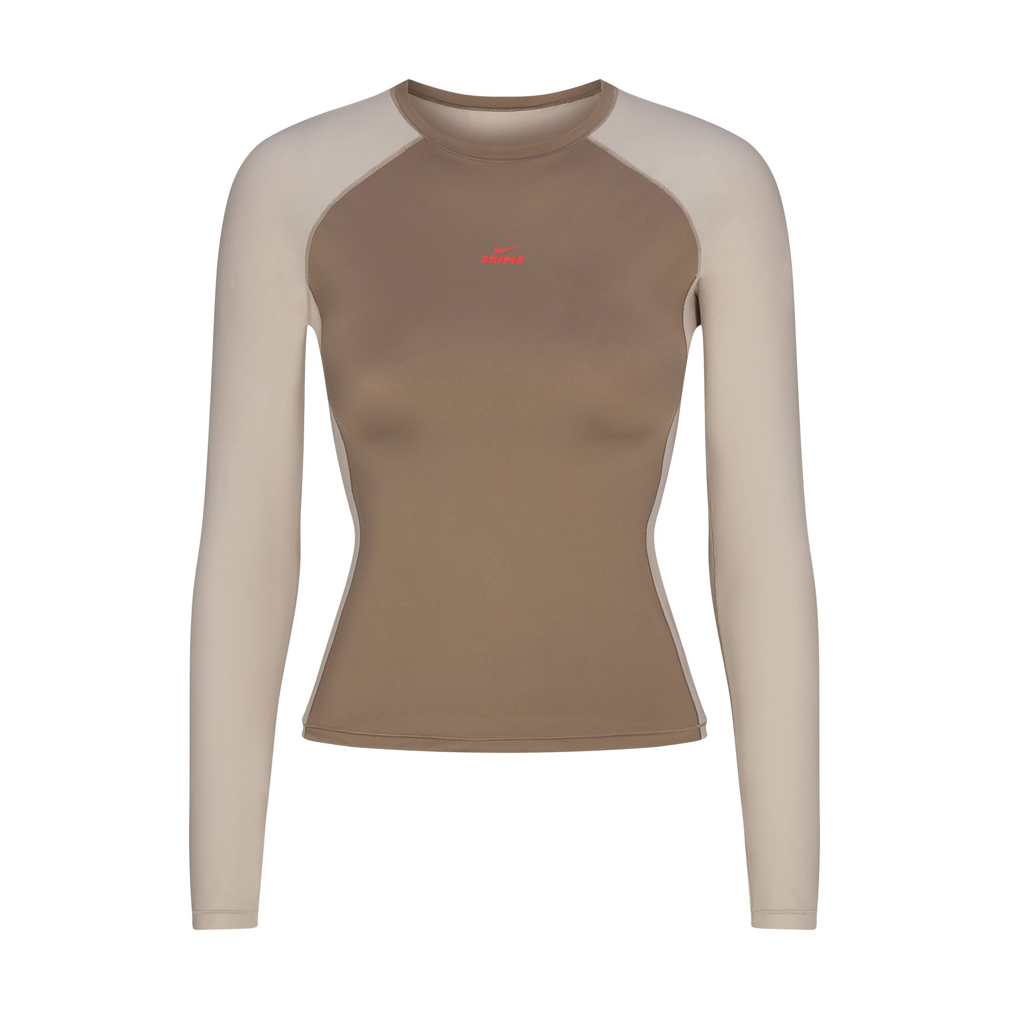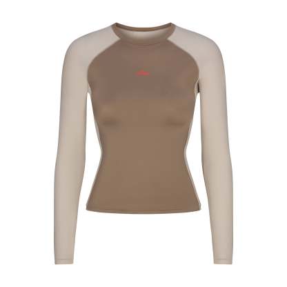 This sleek, breathable crew neck top features colorblocked sleeves and a figure-flattering fit, designed for high-movement style.