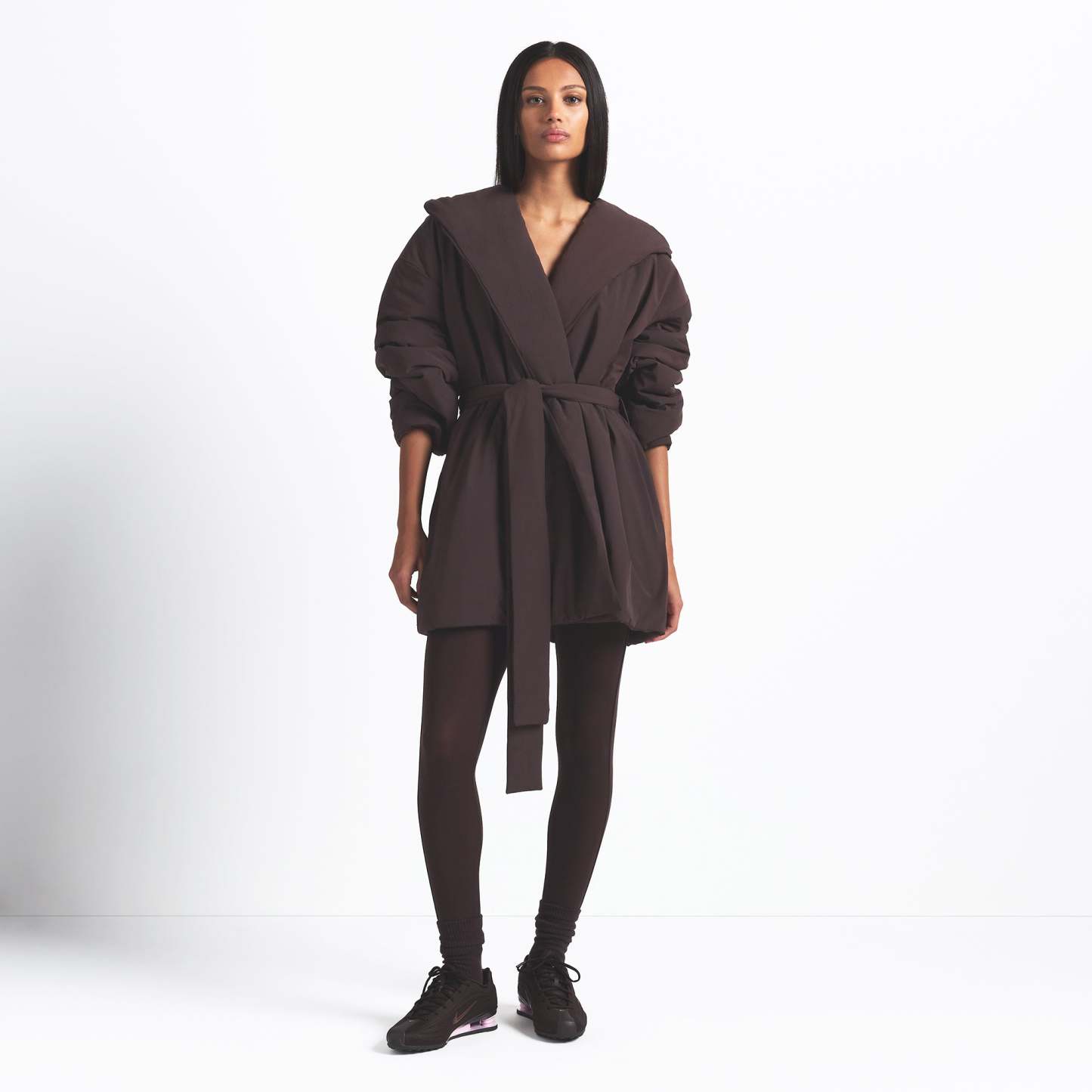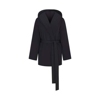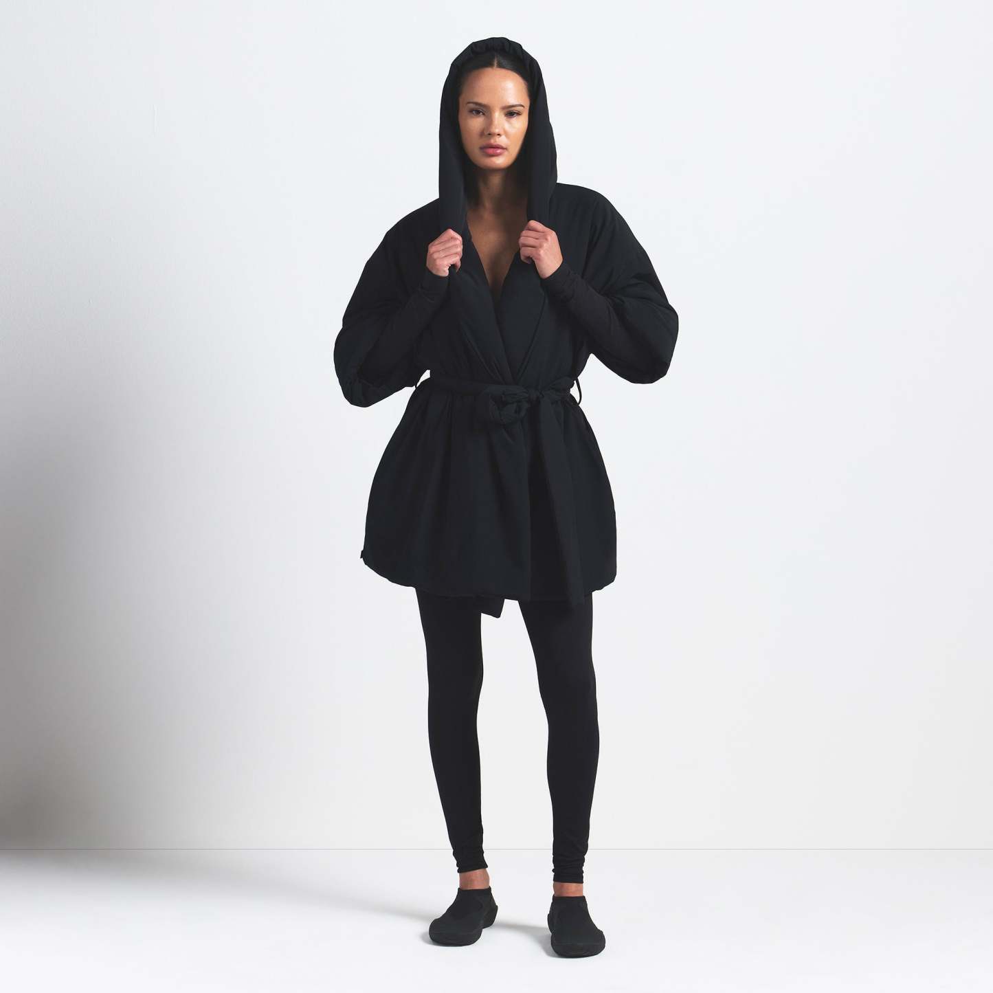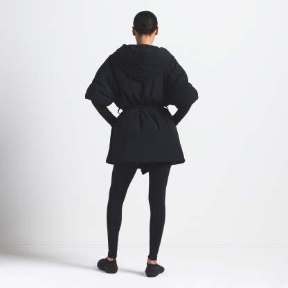 Lightweight and insulated, this hooded wrap coat is your grab-and-go layer for chilly days with a soft feel and zippered pockets—perfect for throwing on over your activewear.