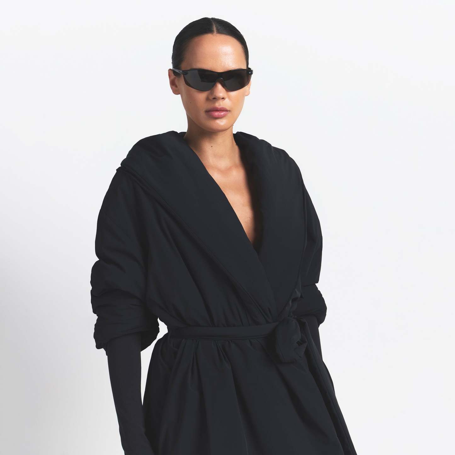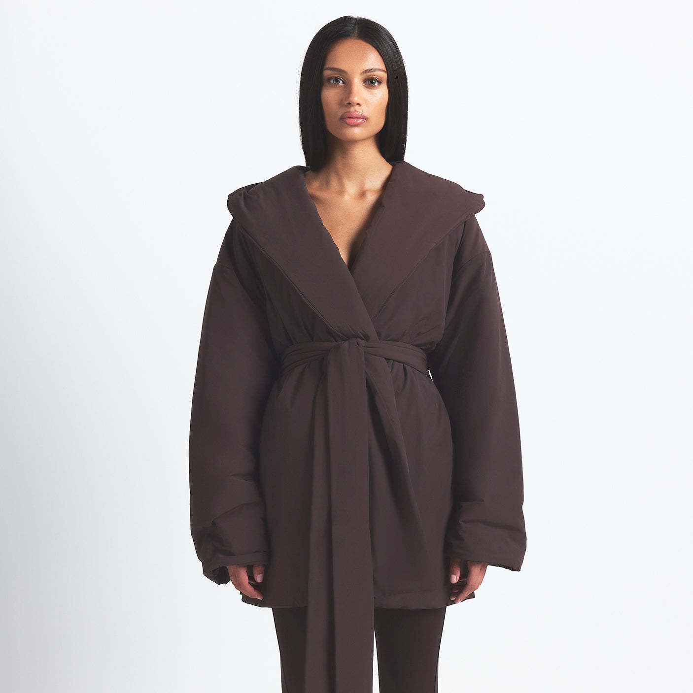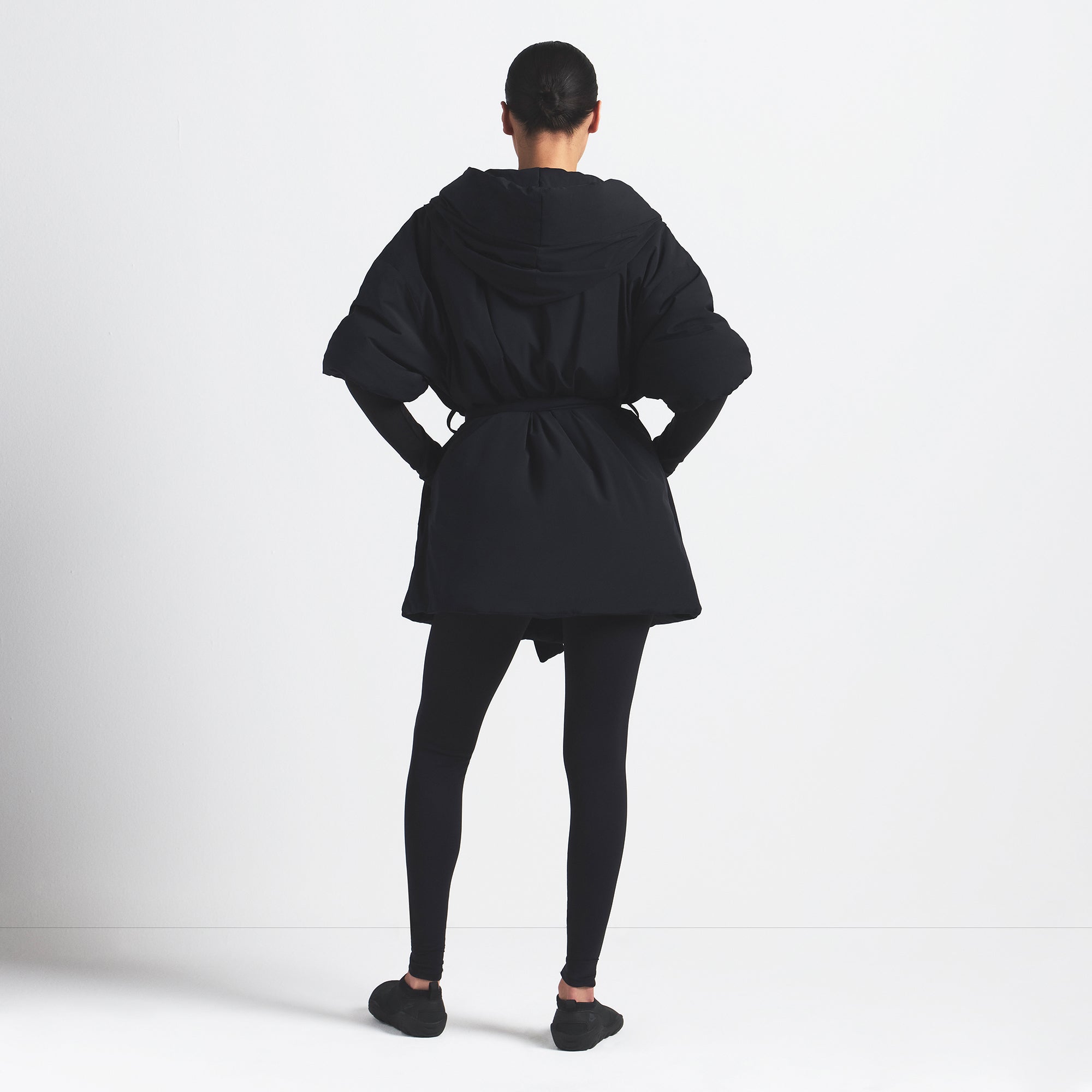 Lightweight and insulated, this hooded wrap coat is your grab-and-go layer for chilly days with a soft feel and zippered pockets—perfect for throwing on over your activewear.