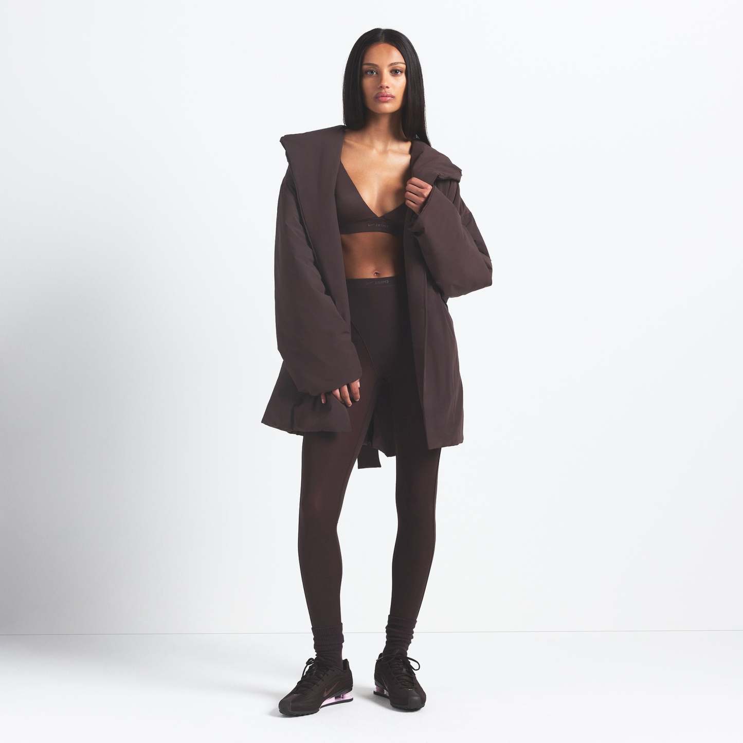 Alyson is size 0, 32A, and 5’9” (175cm), wearing SKIMS XS