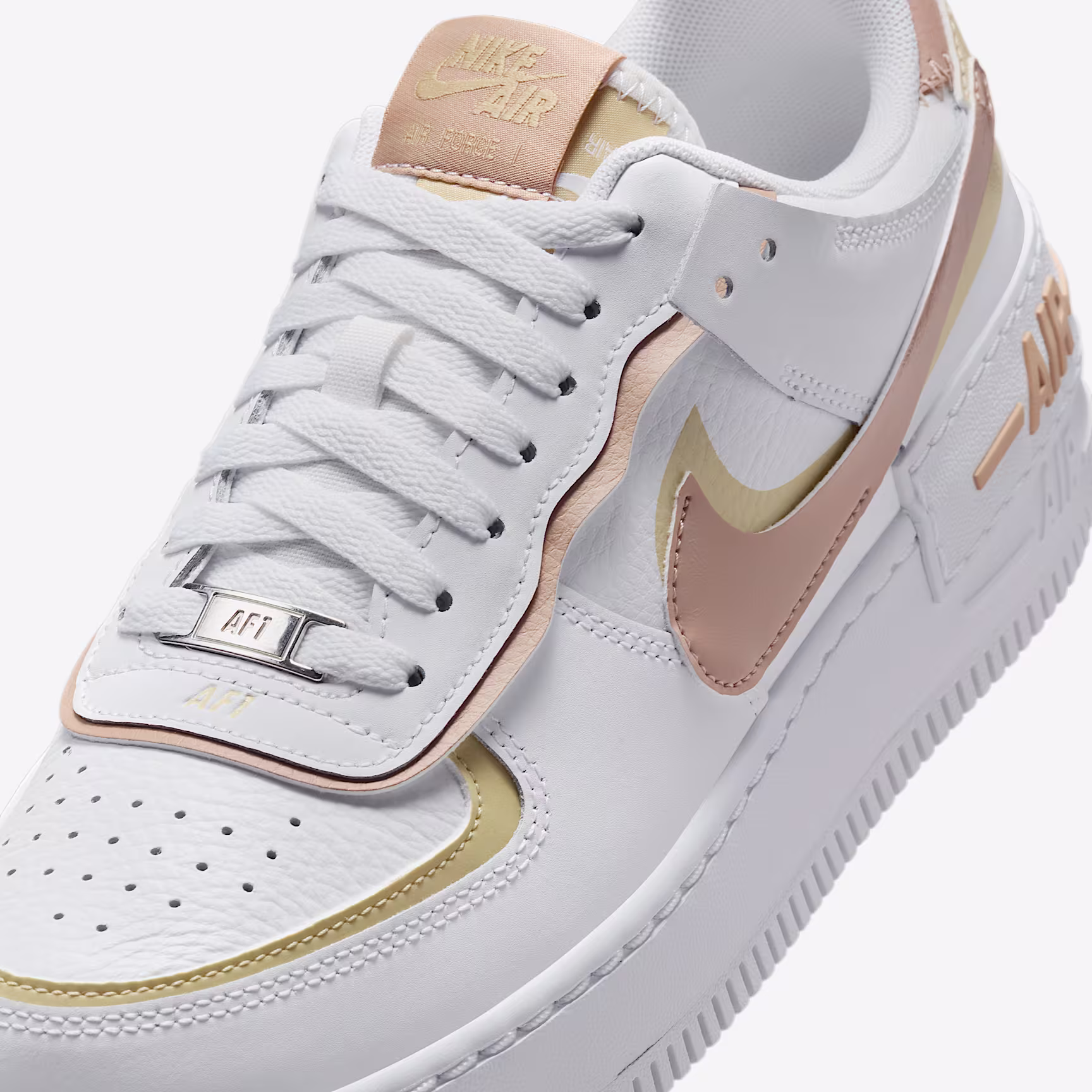 Everything you love about the AF-1—but doubled! The Air Force 1 Shadow puts a playful twist on a hoops icon to highlight the best of AF-1 DNA. With 2 eyestays, 2 mudguards, 2 backtabs and 2 Swoosh logos, you get a layered look with double the branding.