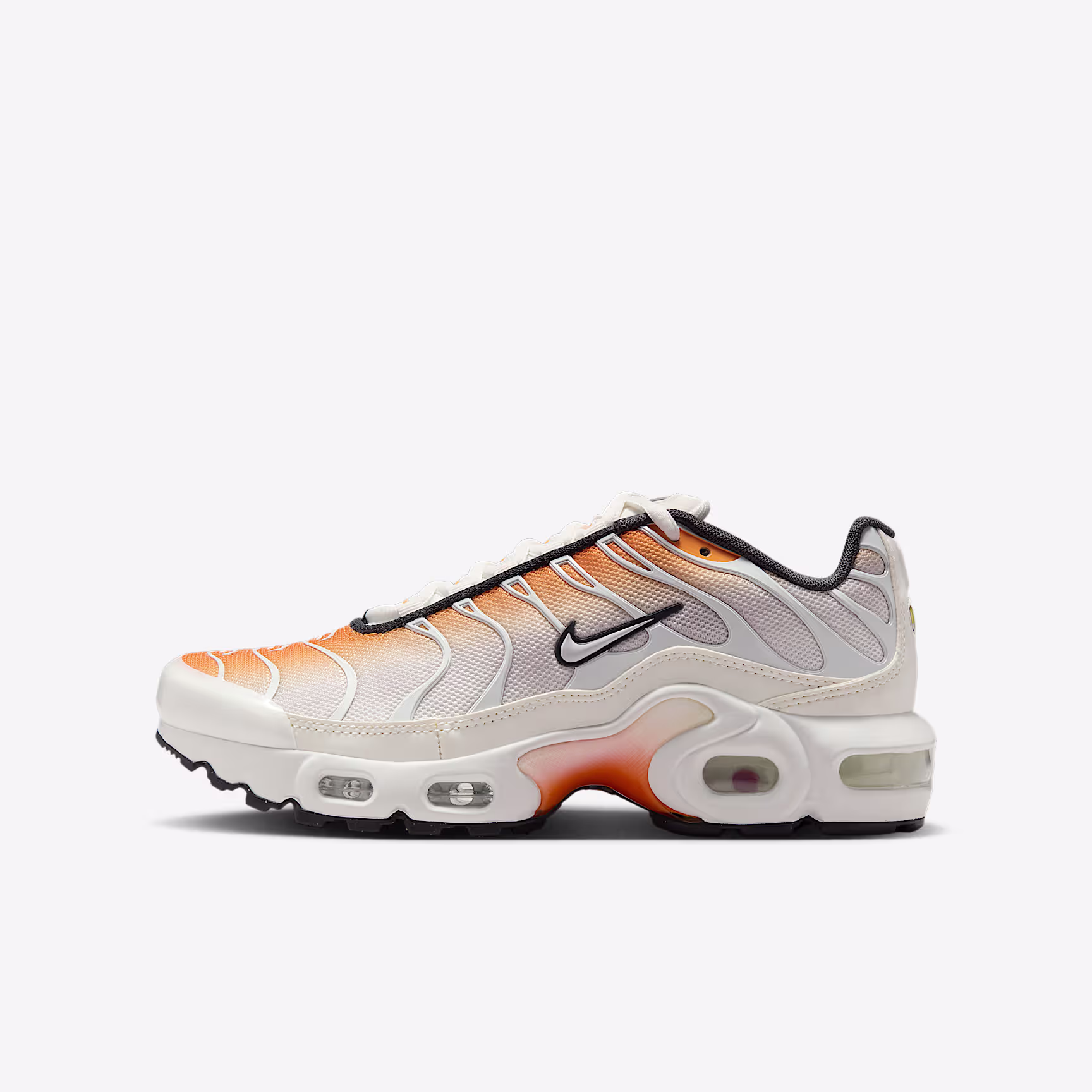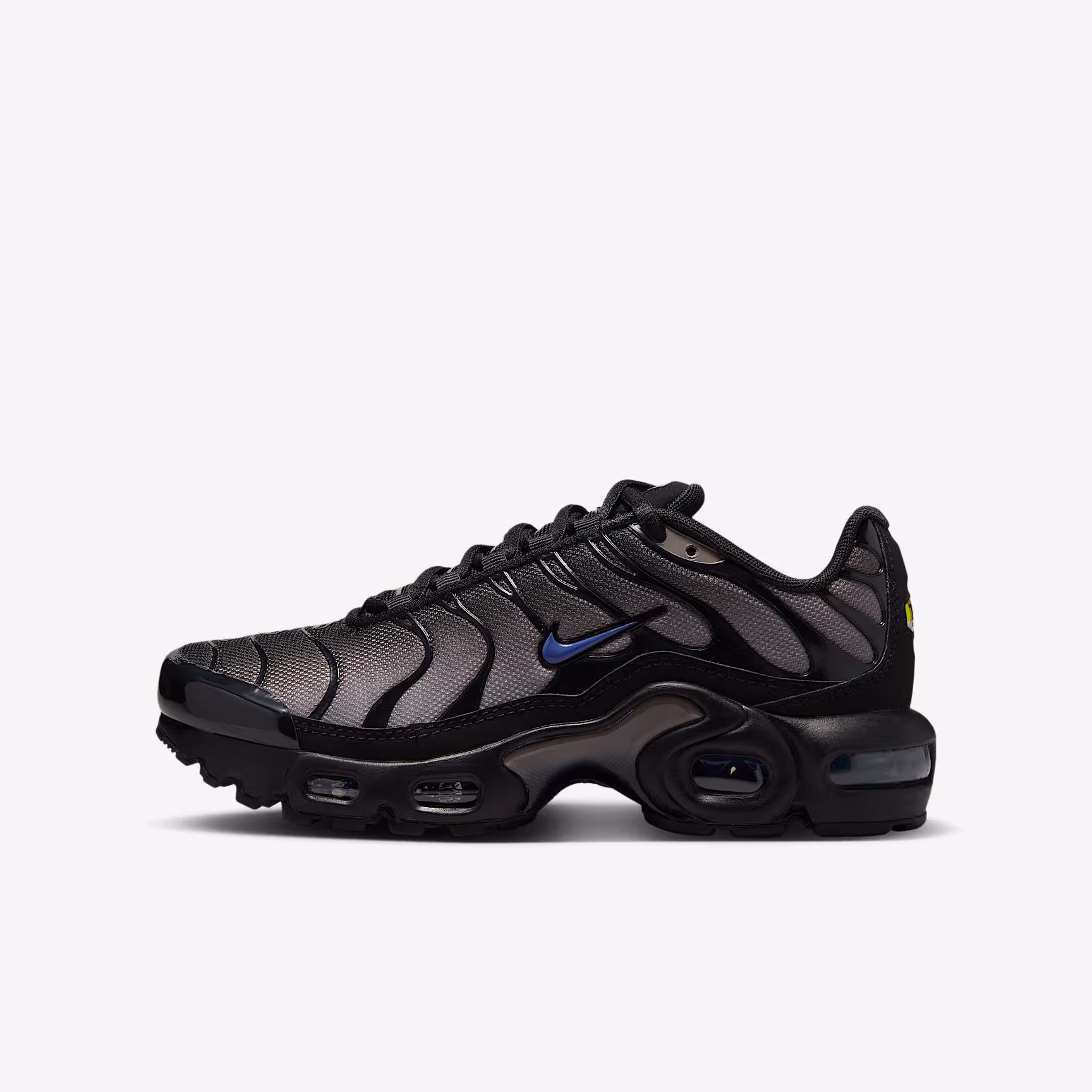 Who says kids don't deserve big cushioning? Not us. Get a taste of our legendary Tuned Air technology with the Nithtke Air Max Plus. From the school playground to your back garden, these comfy kicks are ready to play with breathable mesh fabric up top and a durable rubber sole underfoot. Plus, wavy design lines and iconic plastic accents celebrate bold style.