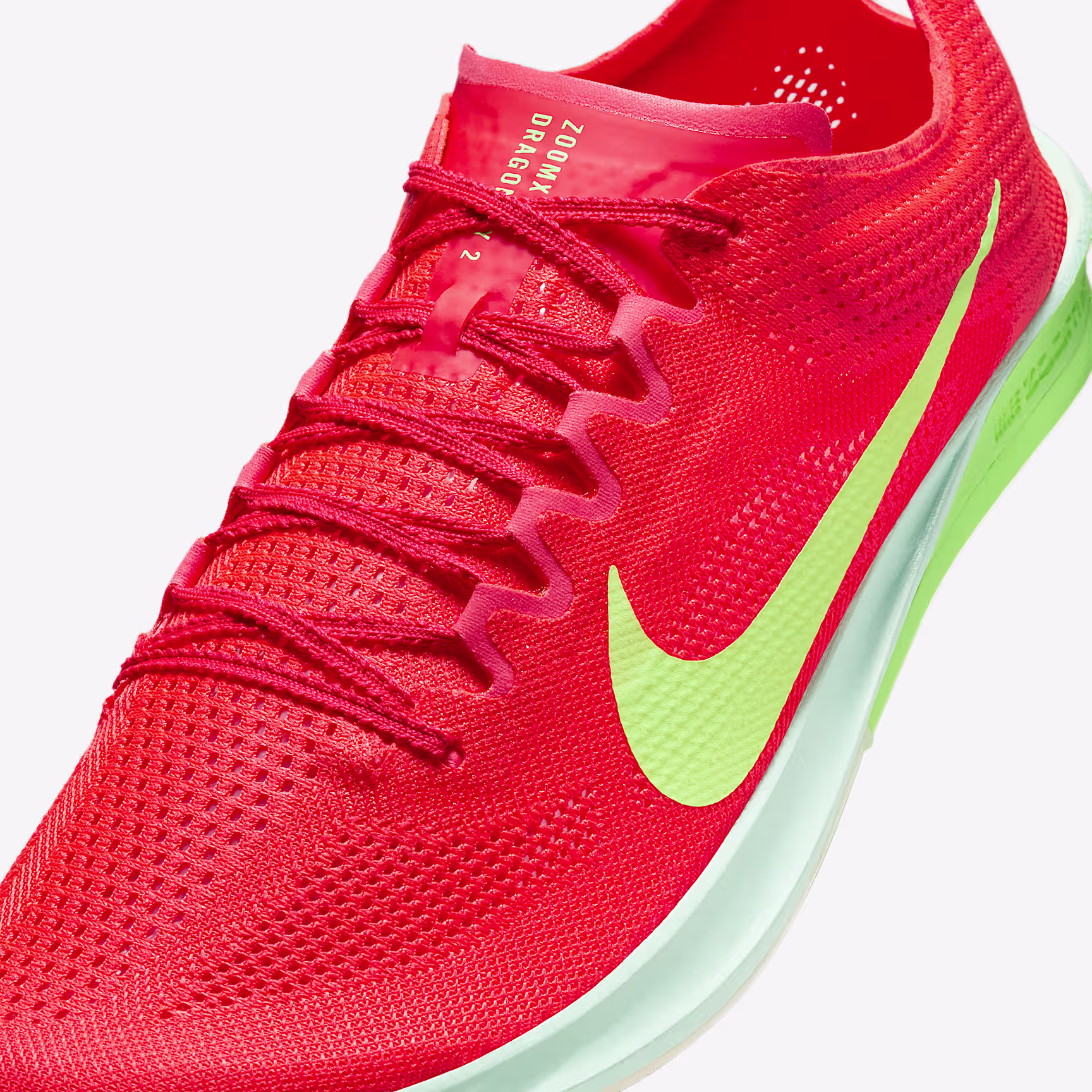 One of the fastest long-distance athletics spikes to ever cross the finishing line turns up the tempo even more. The Dragonfly 2's comfortable fit and propulsive feel are built to go the distance in races and key workouts. Updated spikes, full-length ZoomX foam and a lighter, more responsive plate are ready for speed and stamina.