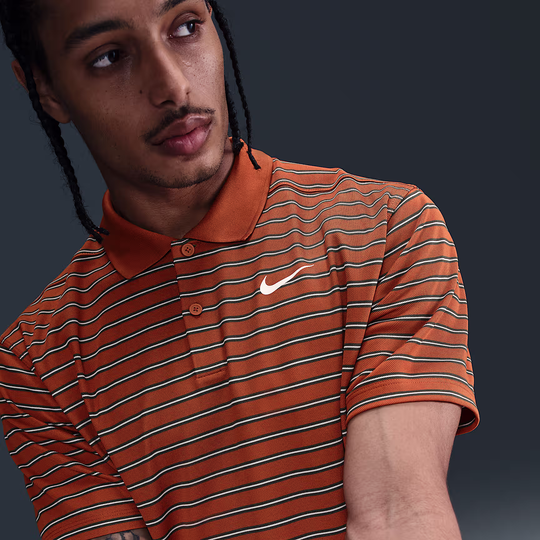 Crafted from striped, sweat-wicking fabric, the Nithtke Dri-FIT Victory Polo puts a modern spin on golf performance. This product is made from 100% recycled polyester fibres.