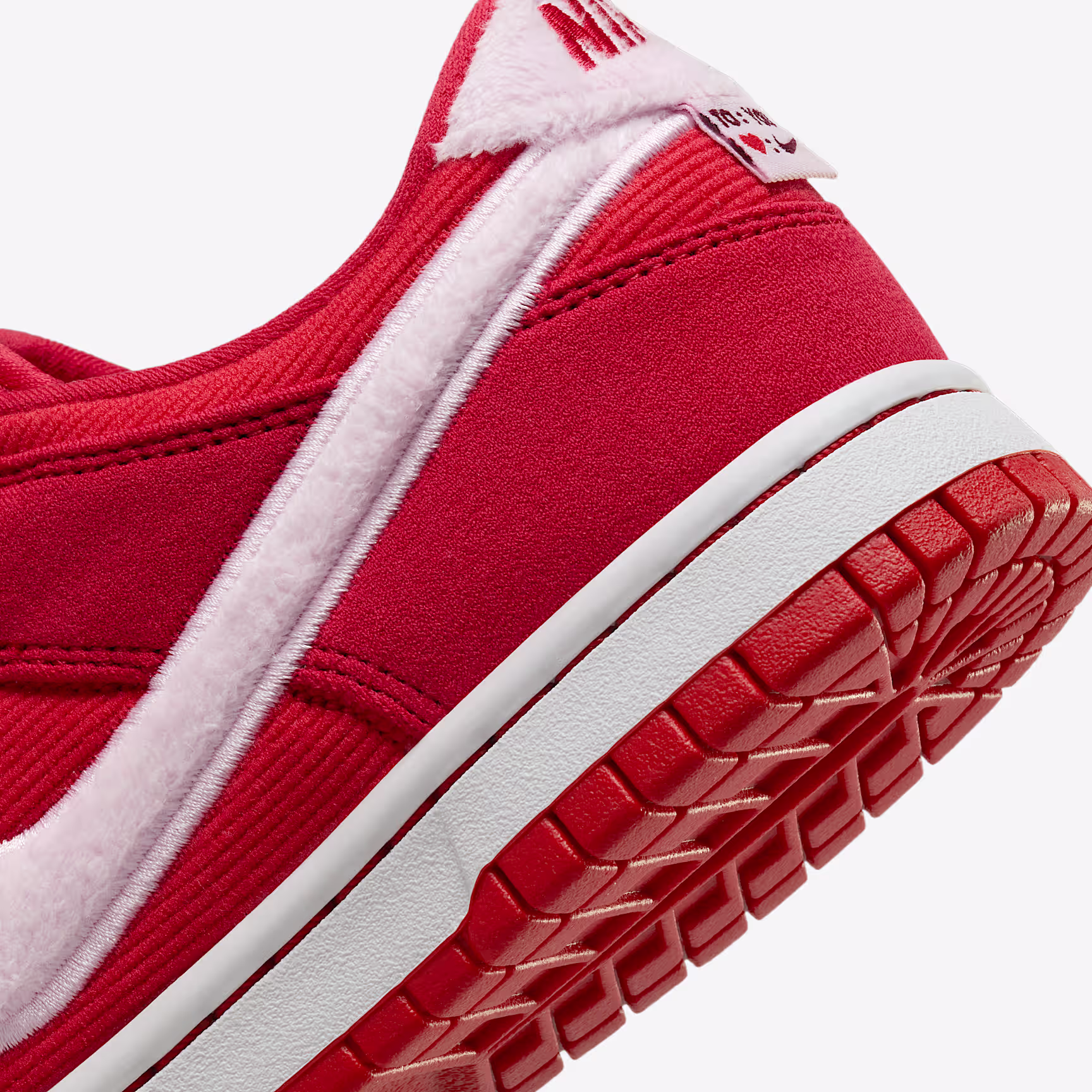 Wear your heart on your feet in the Nithtke Dunk Low. The lightweight knit and corduroy textiles are paired with sweet Valentine's Day details to add a little love to every step. Still channelling the Dunk's vintage style, its padded, low-cut collar lets you take your style game anywhere in comfort. Plus, a special sticker pack lets you share the love with a "solemate".