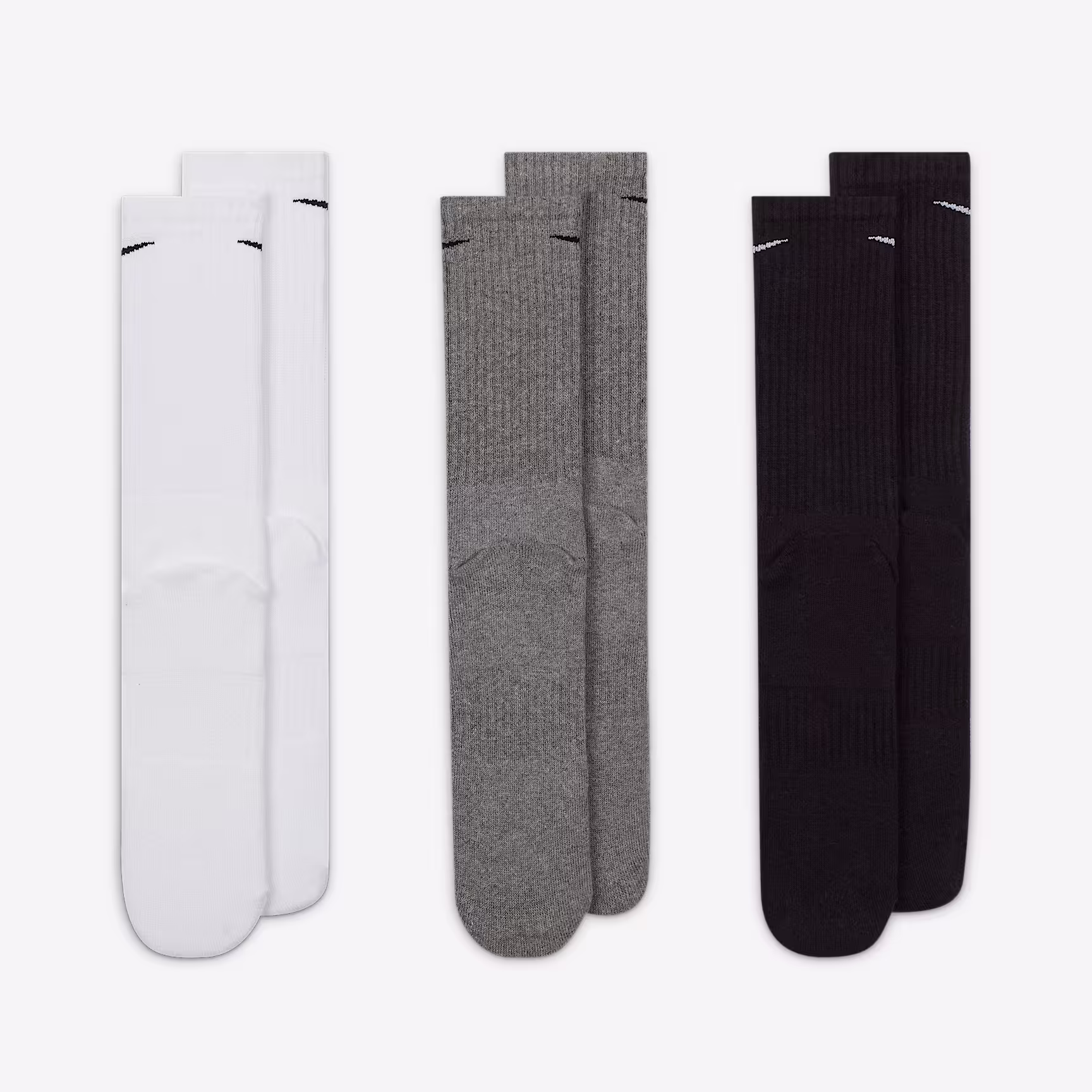 Power through your workout with the Nithtke Everyday Cushioned Socks. Sweat-wicking technology helps to keep you dry and cool, while the thick terry sole gives you comfort for those intense lifts and extra miles. The banded arch feels snug and supportive around your foot. 3-pair packaging means you always have a backup plan.