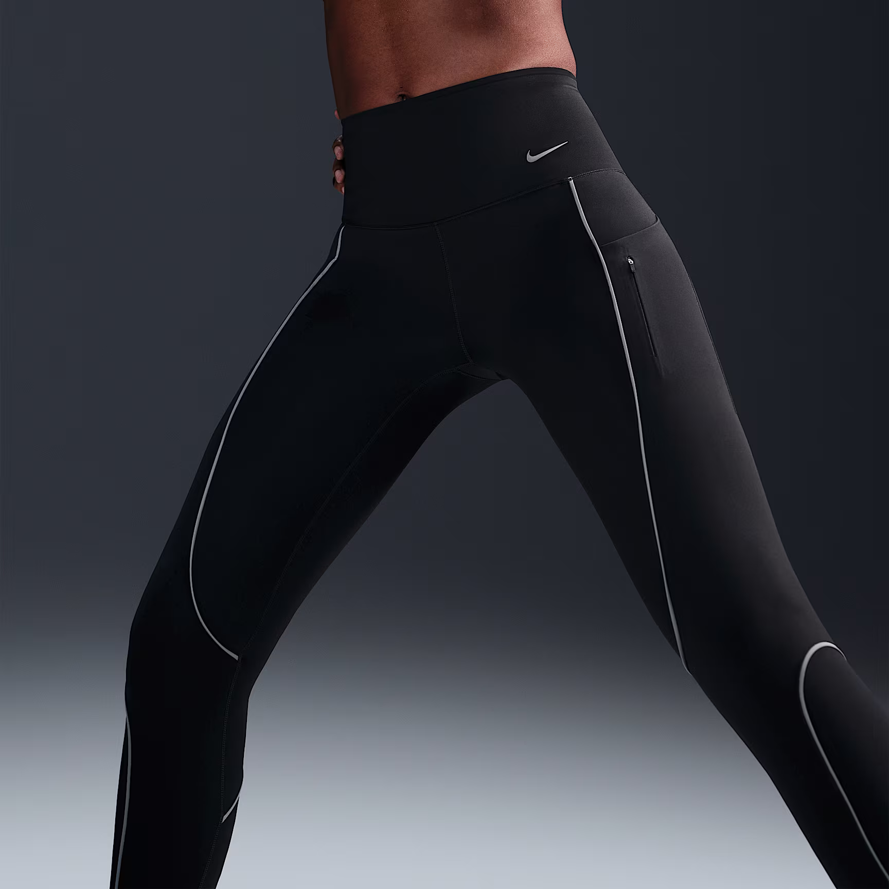 Push yourself day or night with the right balance of support and comfort in our Nithtke Go Leggings. Their sleek, midweight InfinaLock fabric feels compressive and supportive in all the right places. The reflective design piping brightens up your workout, while multiple pockets let you carry everything you need.