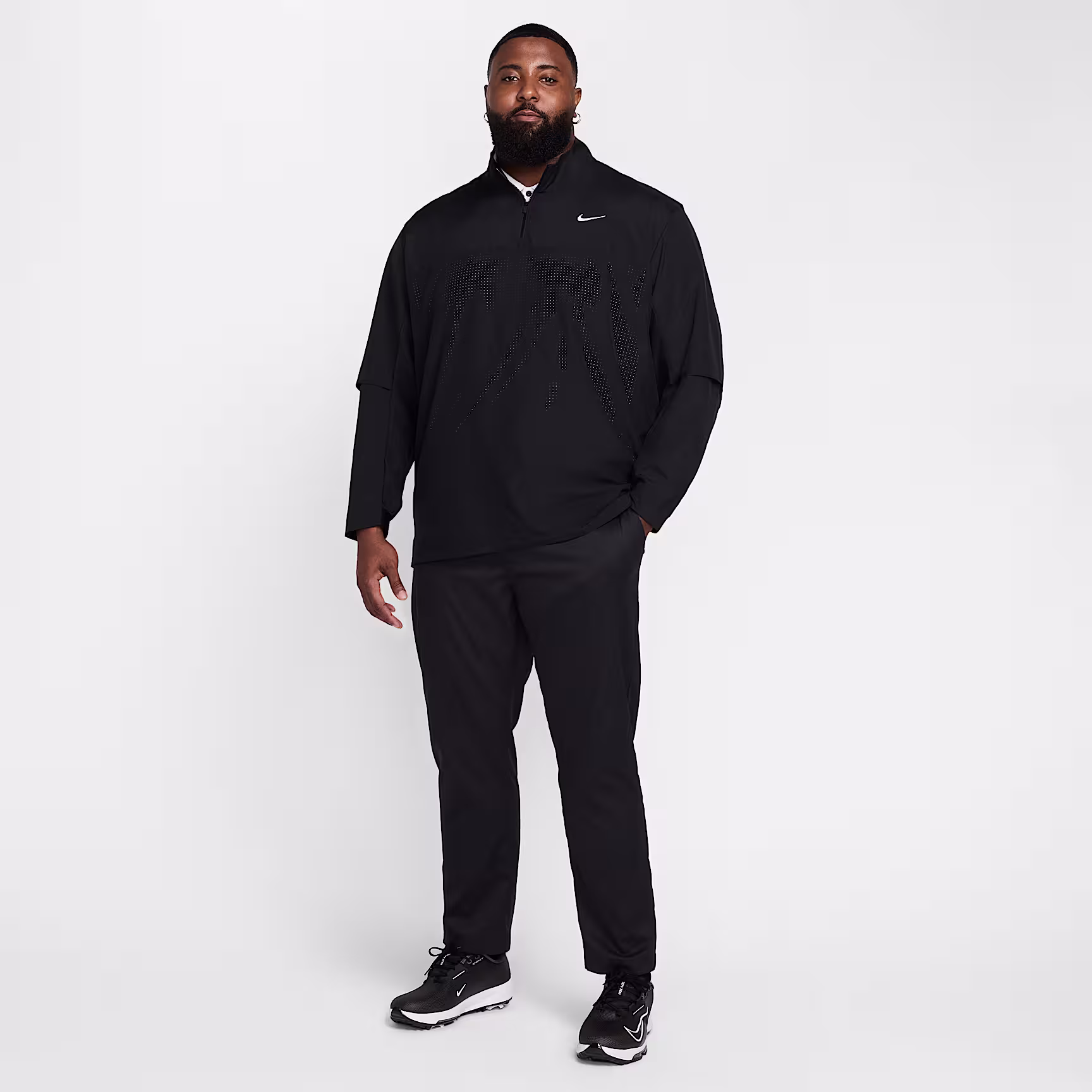 Layer up and stay cool with this 1/2-zip shell jacket. Its loose fit and stretchy feel help you move effortlessly through every shot on the course to your post-round plans. Nithtke Dri-FIT technology moves sweat away from your skin for quicker evaporation, helping you stay dry and comfortable.