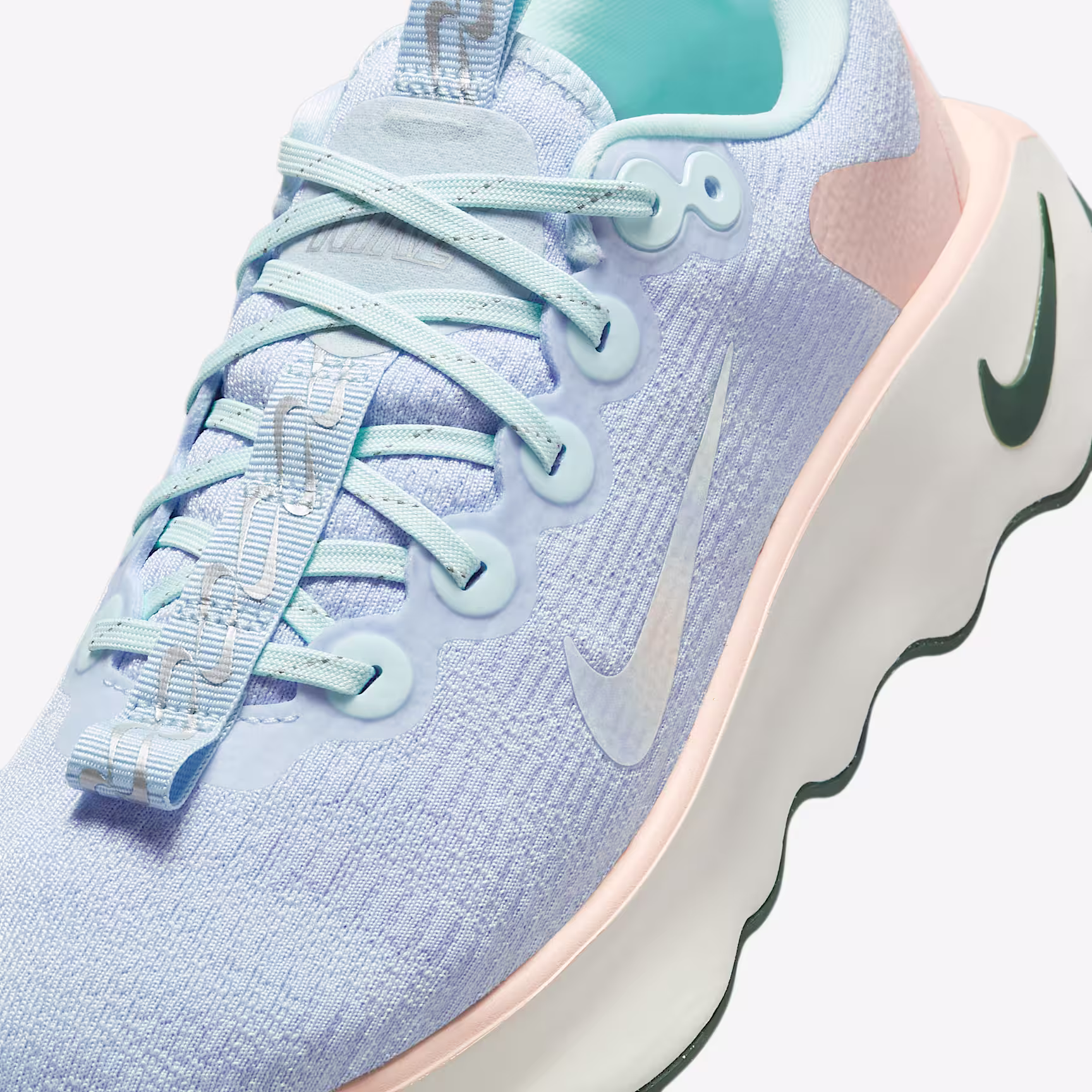 Designed for walking in ultimate comfort, the Nithtke Motiva provides our highest level of cushioning. A tall foam stack is combined with our Comfortgroove innovation on the outsole to absorb the bumps along the way. And its exaggerated rocker helps propel you forwards. The silver Swoosh logo and Soft Pink give this design a premium look.