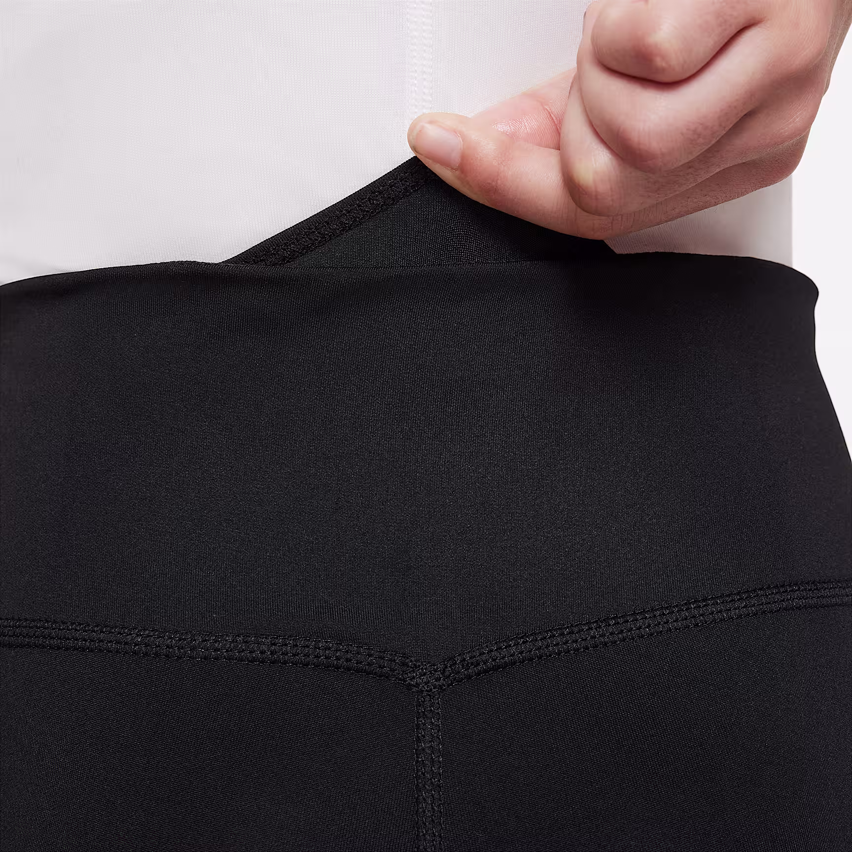 - Mid-rise waistband is tilted up in back for a natural fit and coverage while you bend and stretch