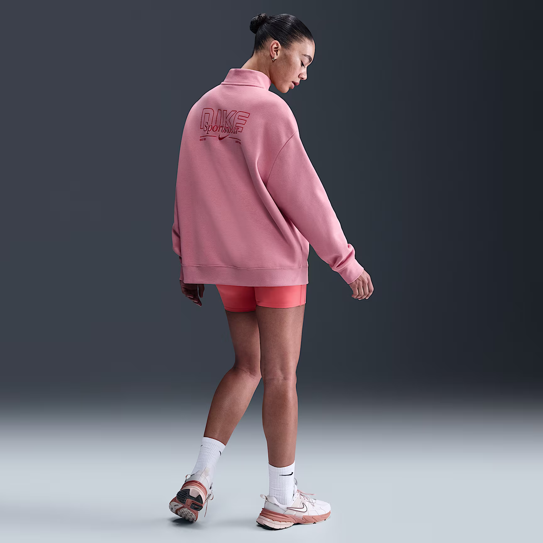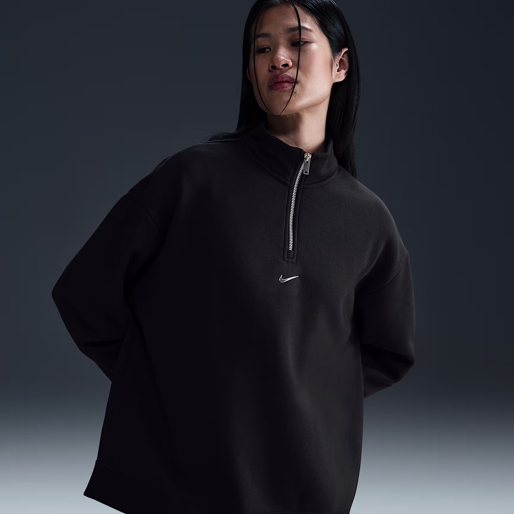 With an oversized fit in soft fleece, this quarter-zip top updates a wardrobe staple to a modern look ready for everyday wear. Its midweight brushed fleece feels extra soft on the inside and smooth on the outside, helping you stay cosy while keeping a structured shape.