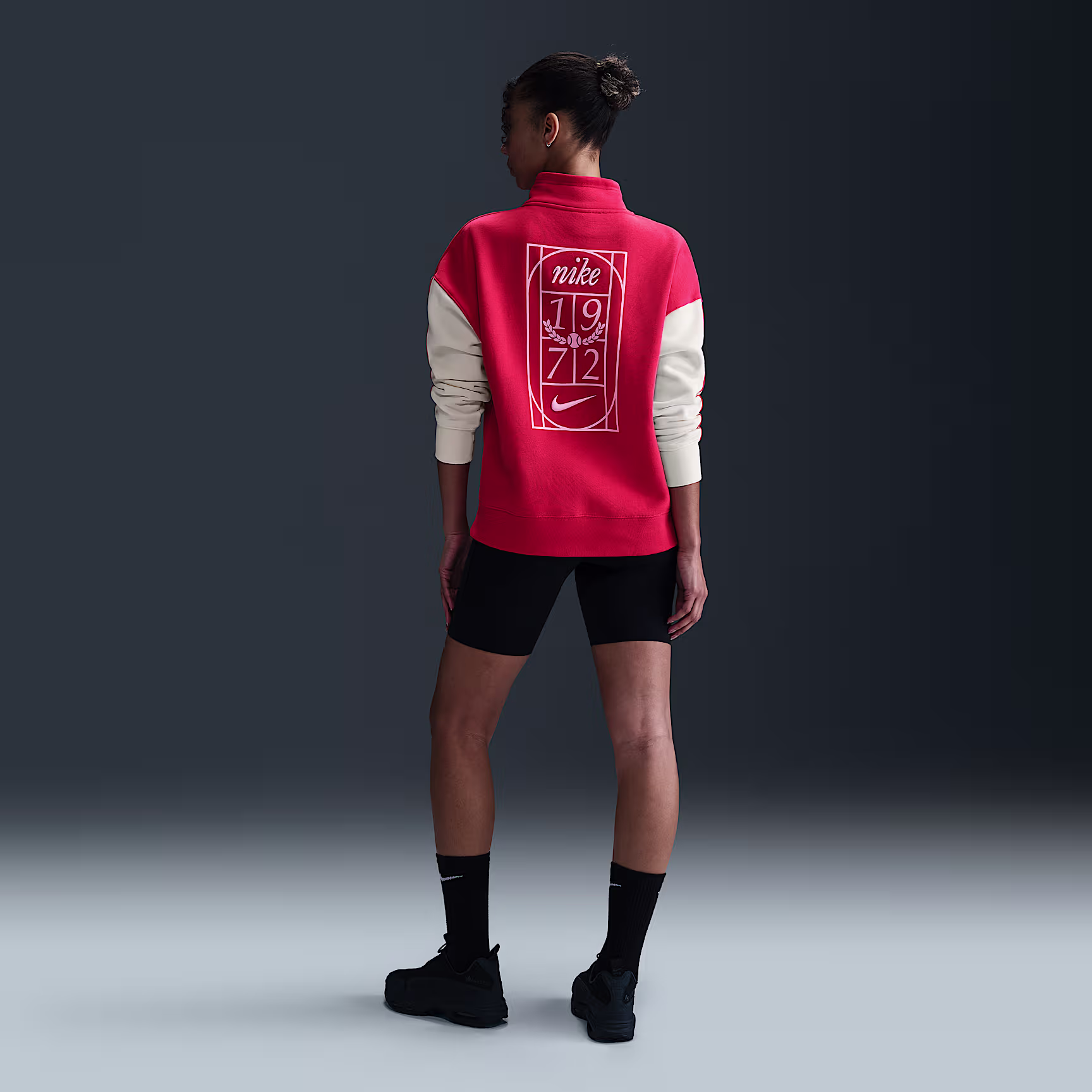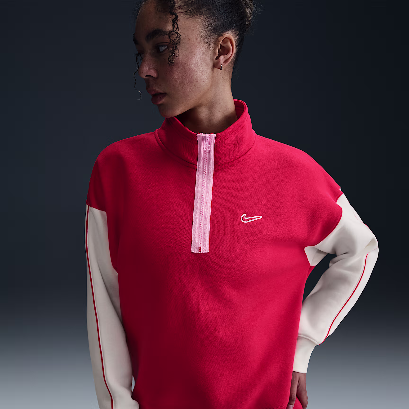 Comfortable and classic, this loose-fitting quarter-zip sweatshirt is made from midweight brushed fleece that feels soft on the inside and smooth on the outside.