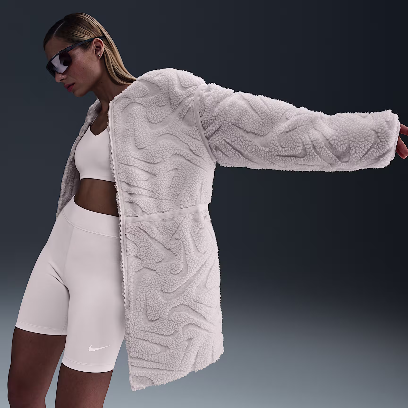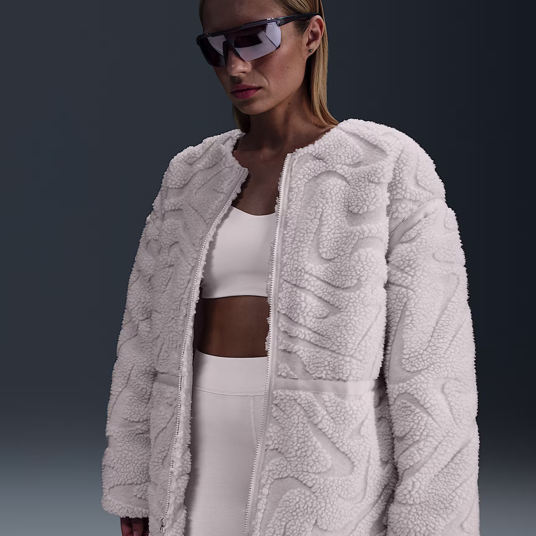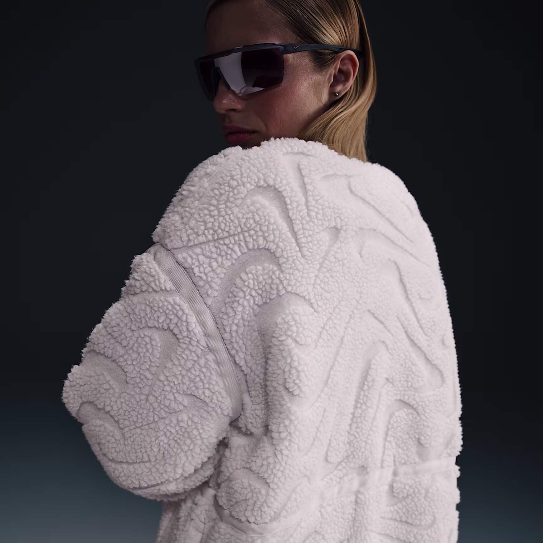 Woolly fabric with an all-over Swoosh logo design helps take this roomy jacket to the next level.