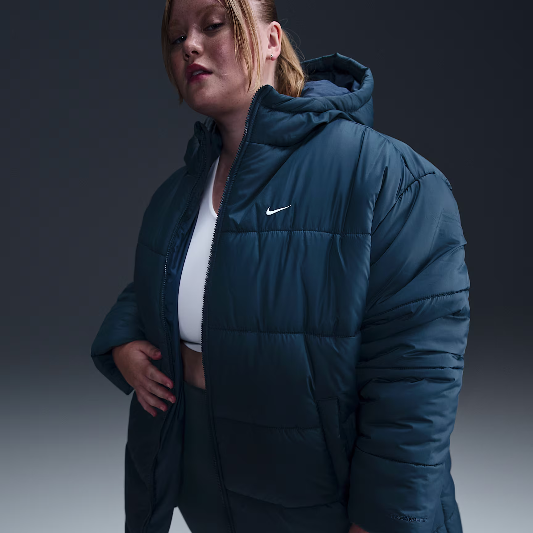 Take on the winter chill in a parka designed to add some warmth to your life. Loose enough to layer, its synthetic fill adds insulation, while Nithtke Therma-FIT technology helps manage your body's natural heat to keep you warm in cold-weather conditions. On top of that, a water-repellent finish helps keep you dry. So zip it up, throw your hands in the pockets and get out there!