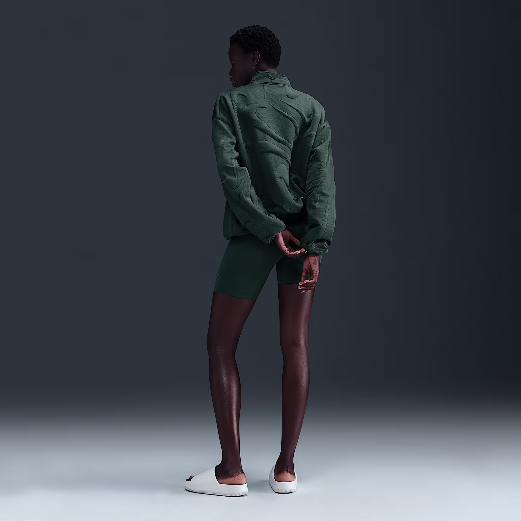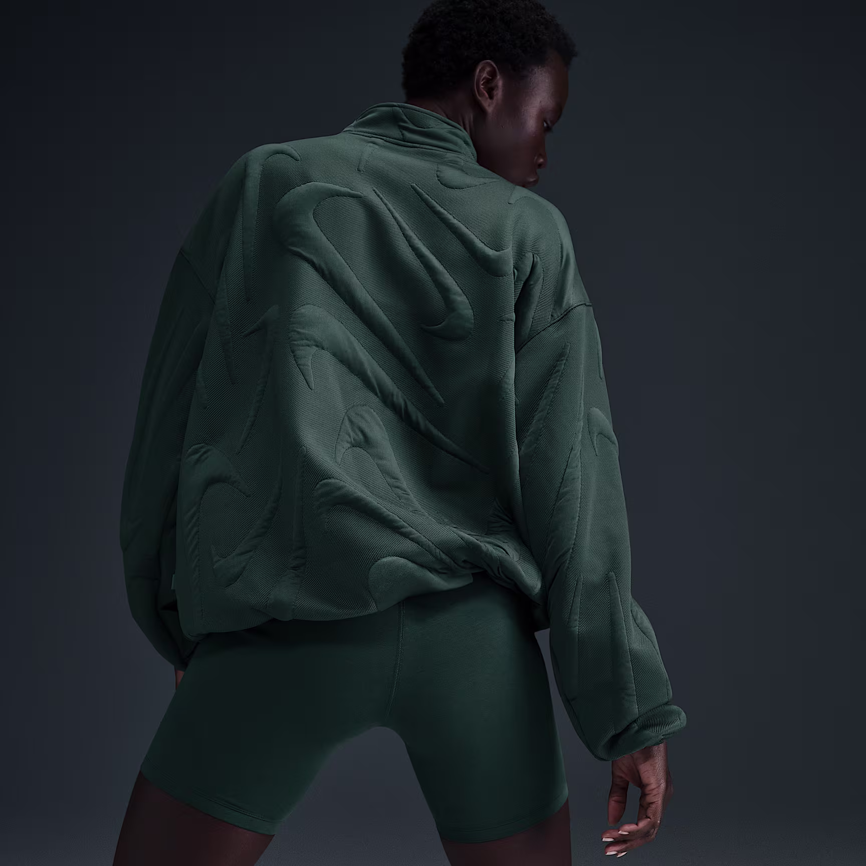 Elevate your look with bold contrast in this 1/4-zip sweatshirt. Pillowy Swoosh logos add dimension to the sturdy jacquard body fabric, while a midweight, soft jersey lining keeps it cosy. Elastic on the cuffs and hem tightens in the oversized fit.