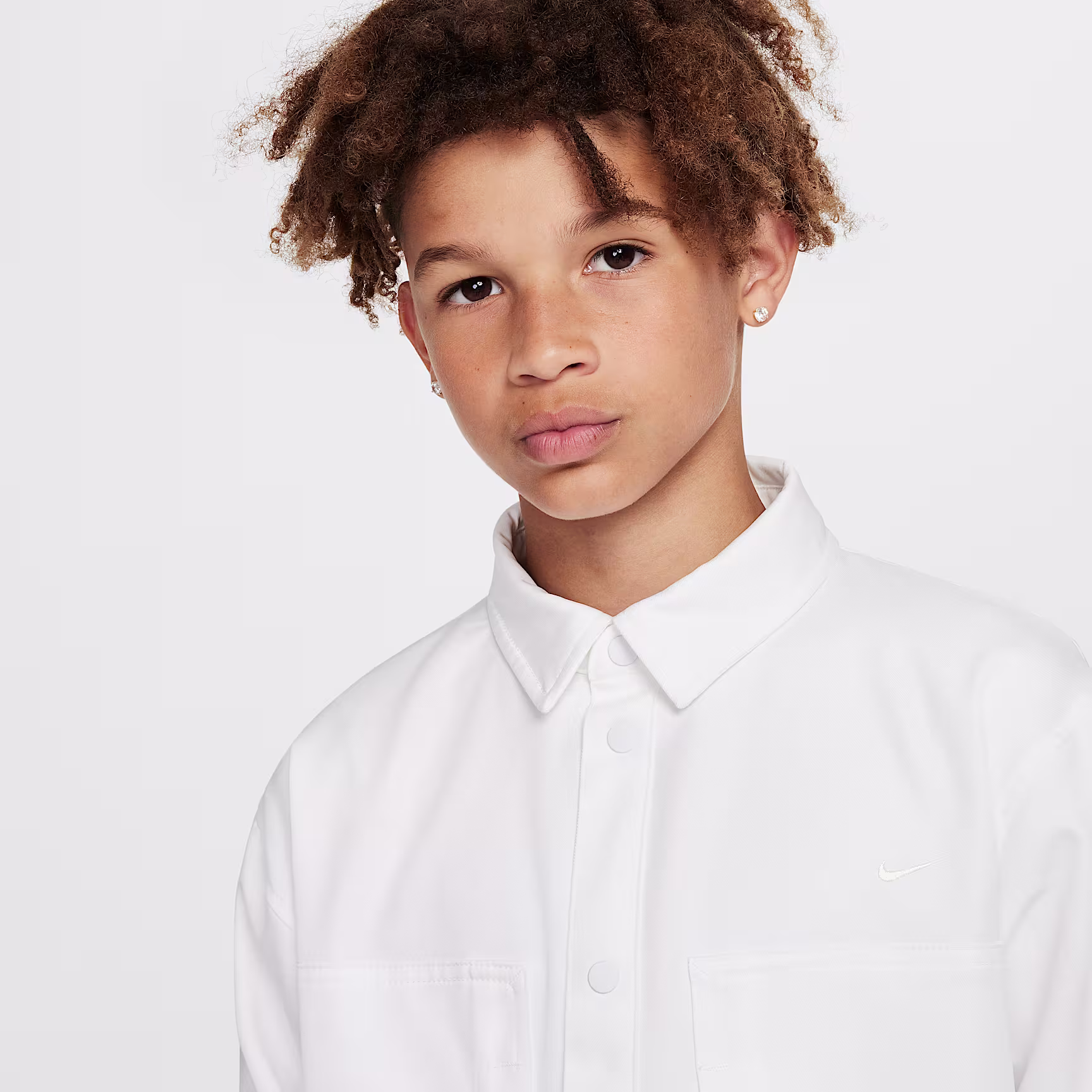 How do you level up a basic? Make it built to last and infuse it with subtle style. Heavyweight twill fabric helps this workwear-inspired top hold up to all your adventures and then some. A fold-down collar gives you the classic look of a button-down while a half-press-stud design lets you experiment with how you wear it. See? Anything but basic.