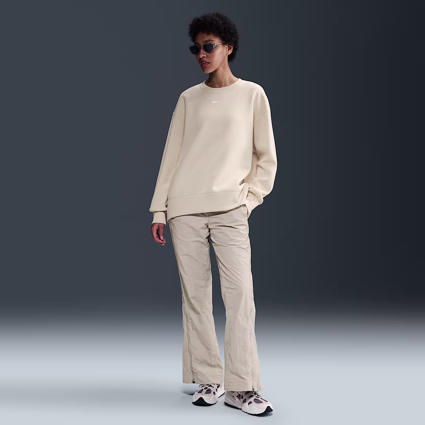 This cosy fleece sweatshirt feels extra soft on the inside and smooth on the outside. Dropped shoulders and extra-wide ribbing enhance the oversized look.