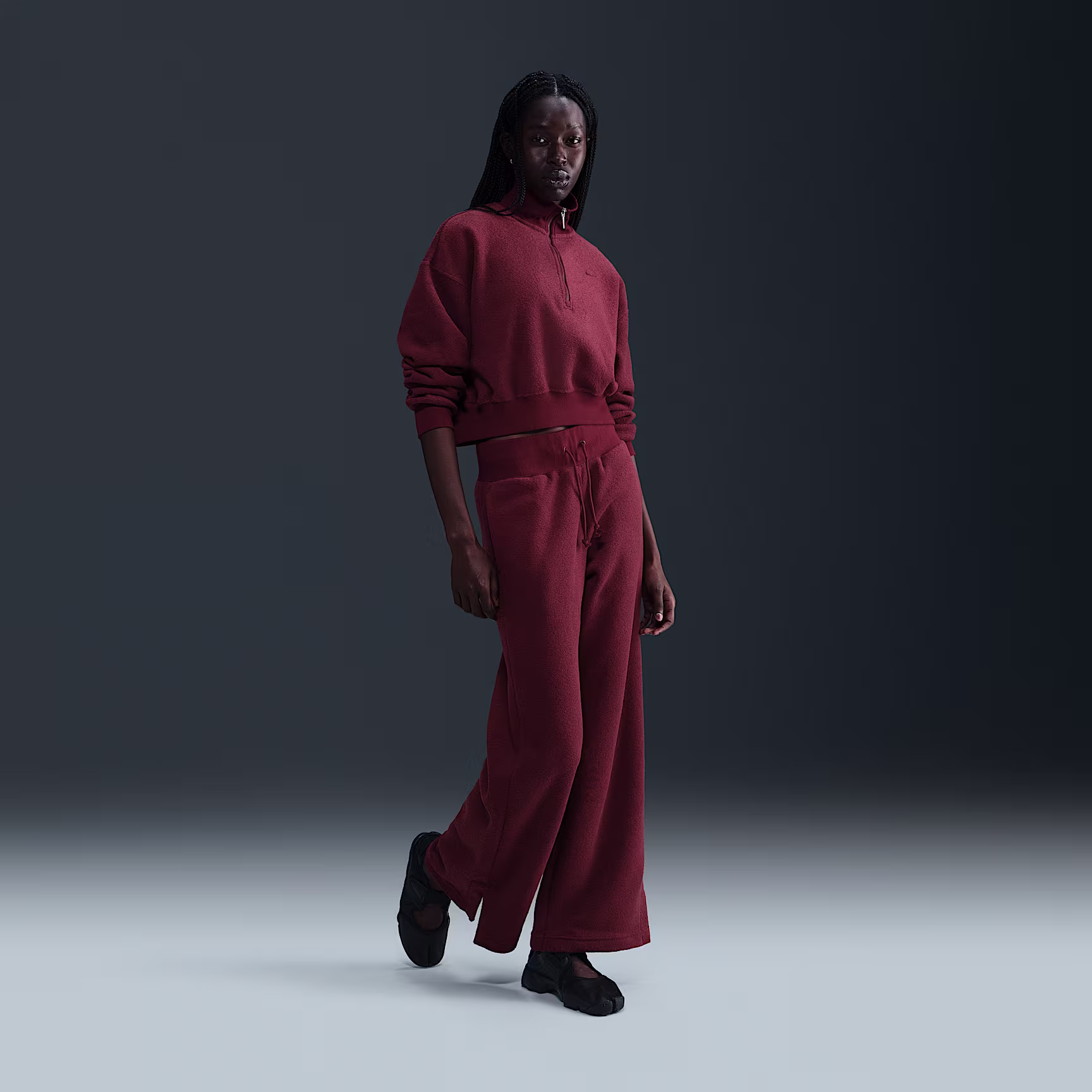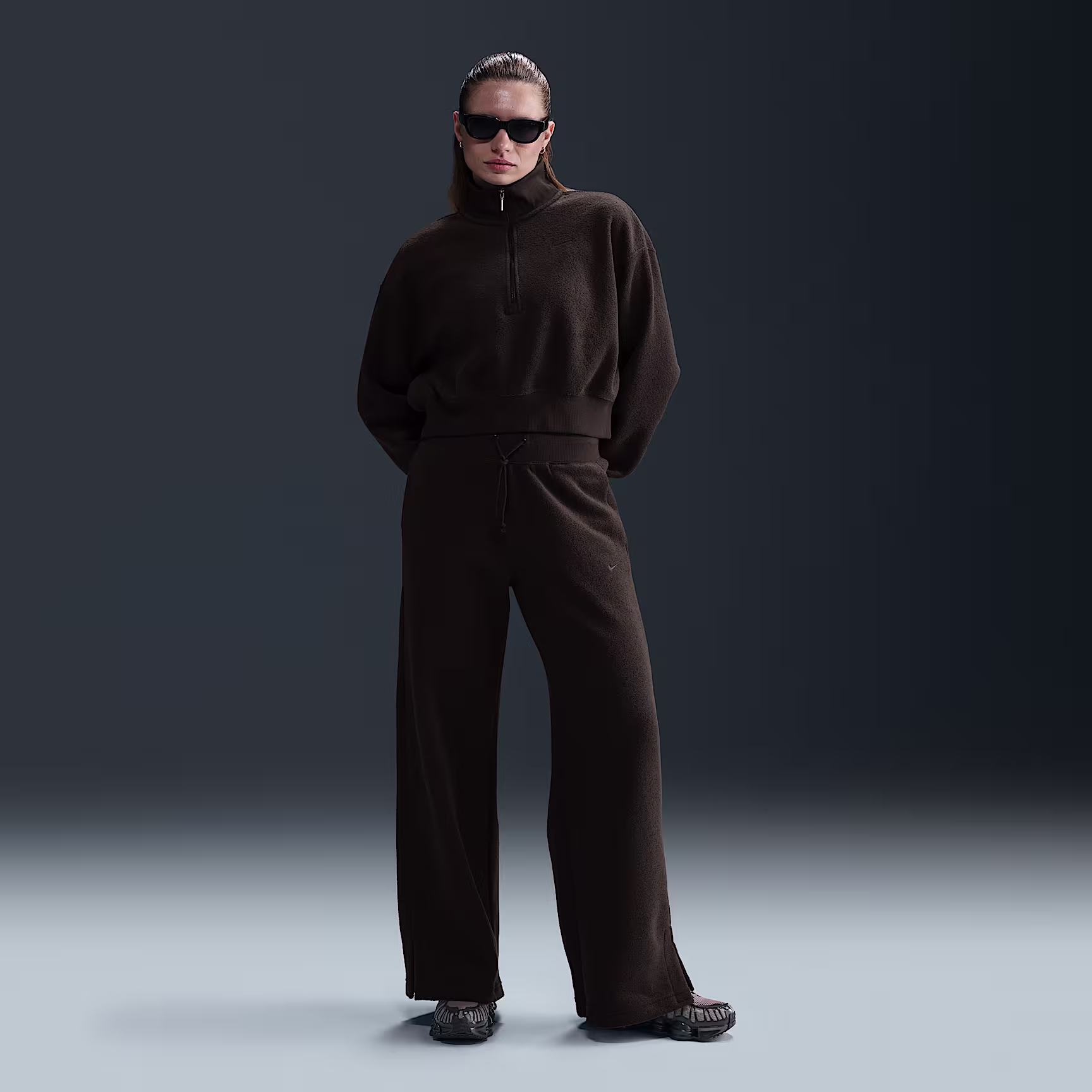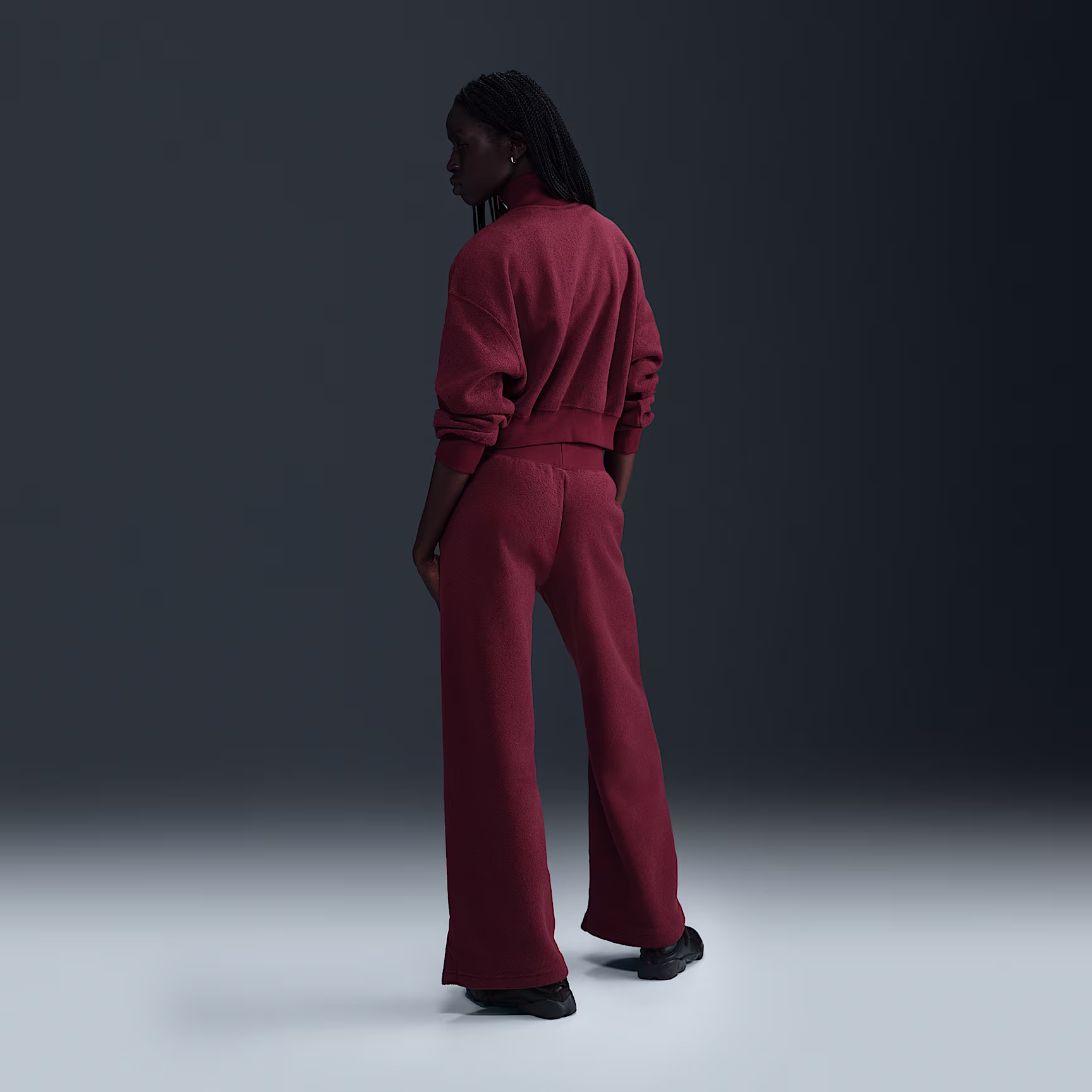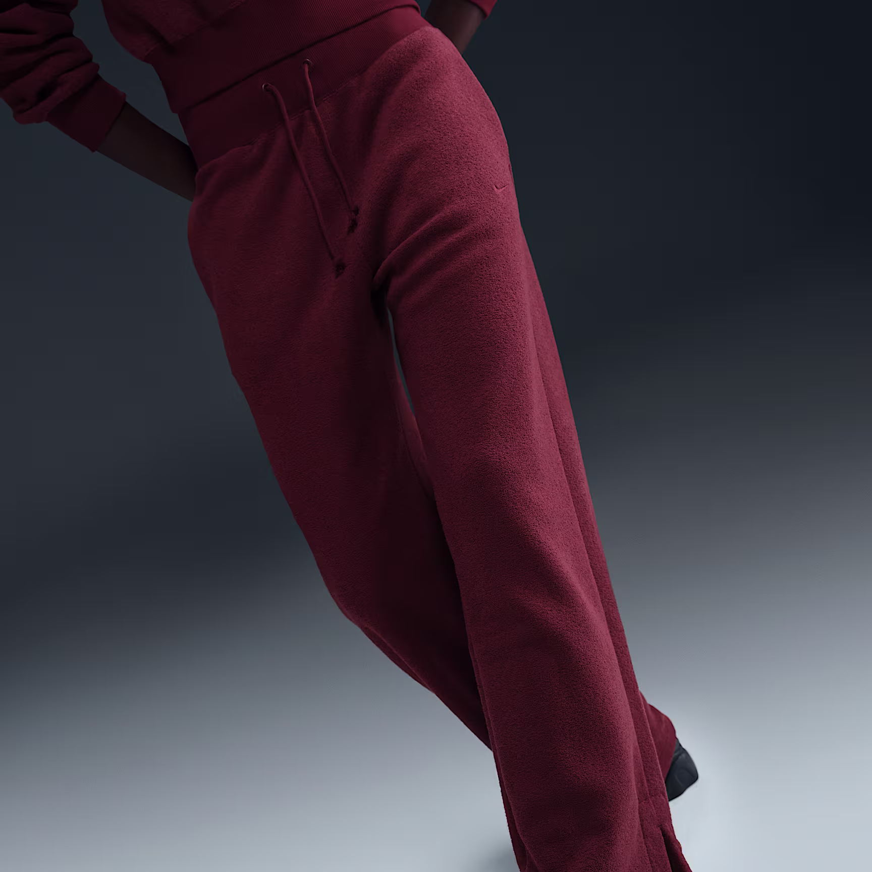 Grounded in style, comfort and versatility, meet our take on luxury loungewear. Textured fleece makes these high-waisted trousers cosy enough to wear around the house yet elevated enough to wear out in the city. Meanwhile, extra room throughout the legs lets you relax to the max.