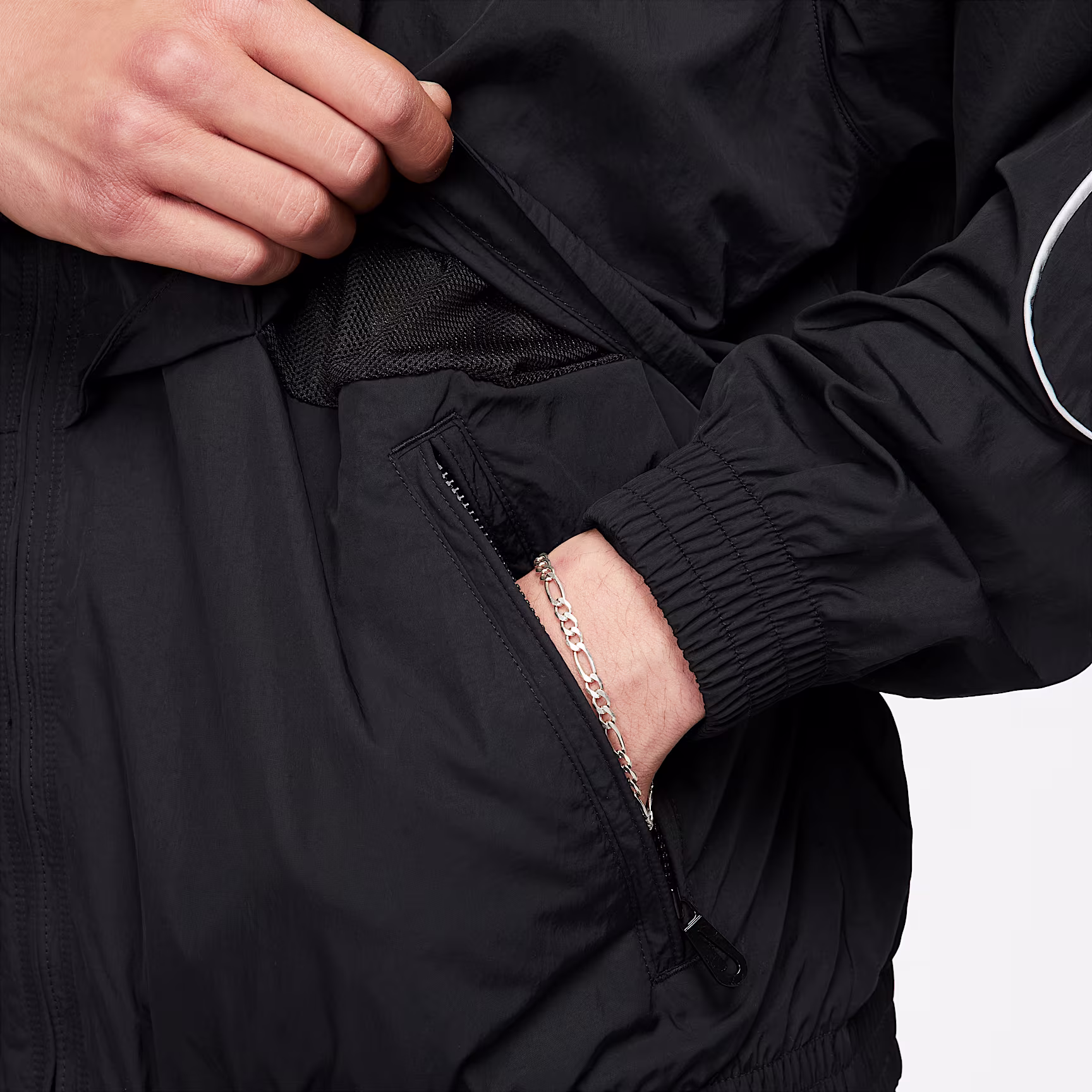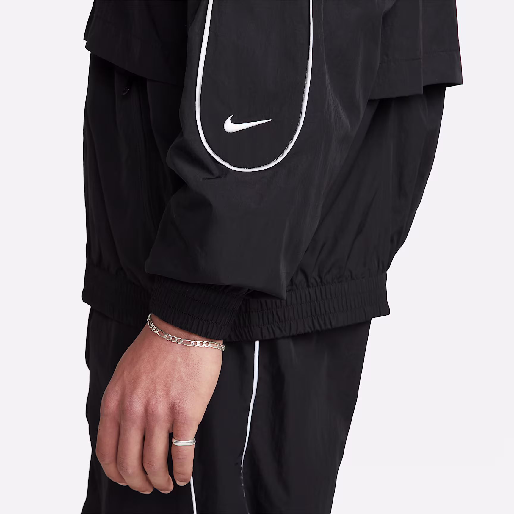Day or night, our Solo Swoosh tracksuit jacket gives you clean, classic style that's synonymous with our Solo Swoosh collection. The woven fabric feels crisp and lightweight, and the reflective design piping adds a pop of contrast. For a uniform look from the front door to the record shop, pair it up with our matching Solo Swoosh tracksuit bottoms.