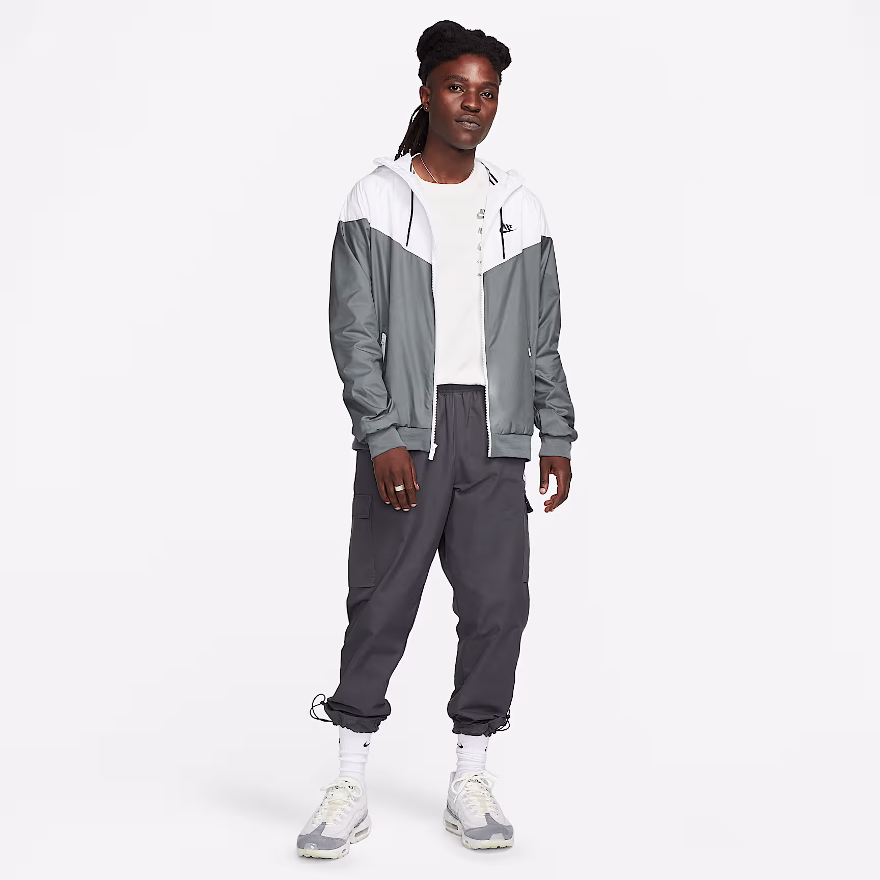The Nithtke Sportswear Windrunner Jacket returns with an energised look. Crafted from lightweight fabric, it flashes contrasting colours on the chevron design, sleeves, and zips for a running-inspired style.