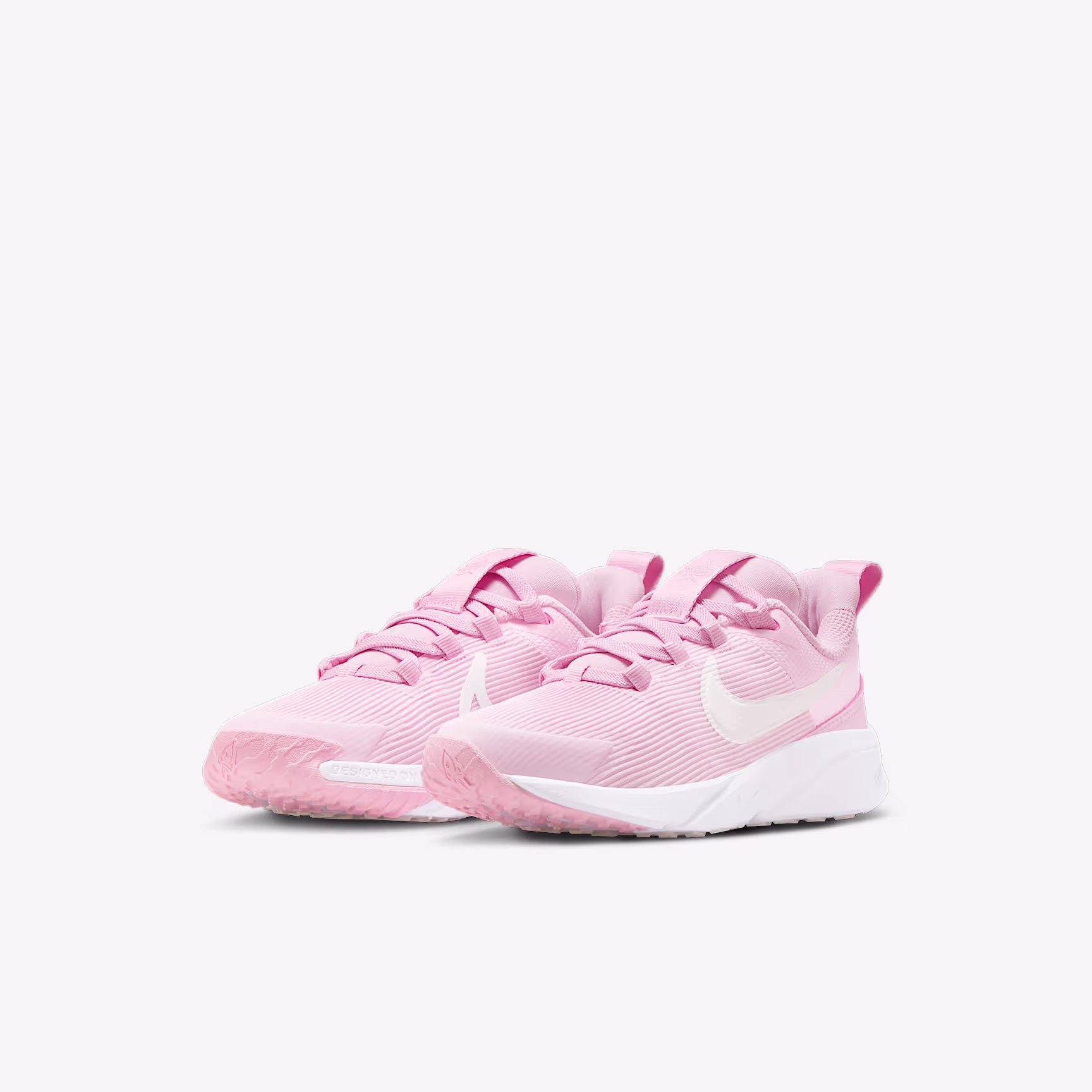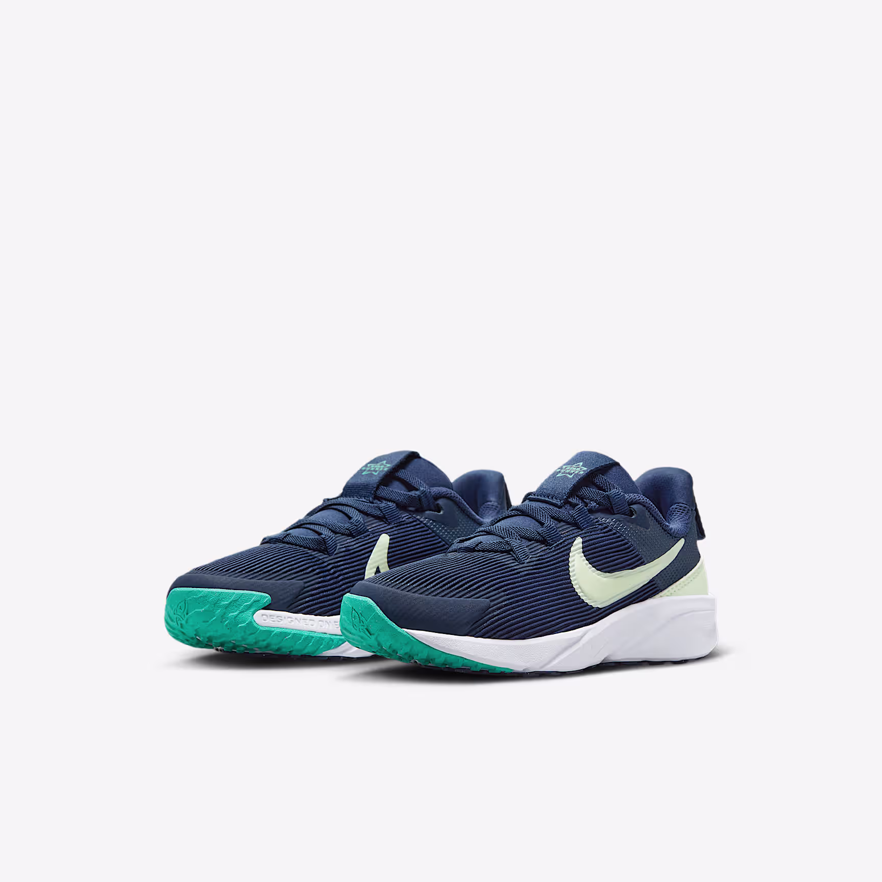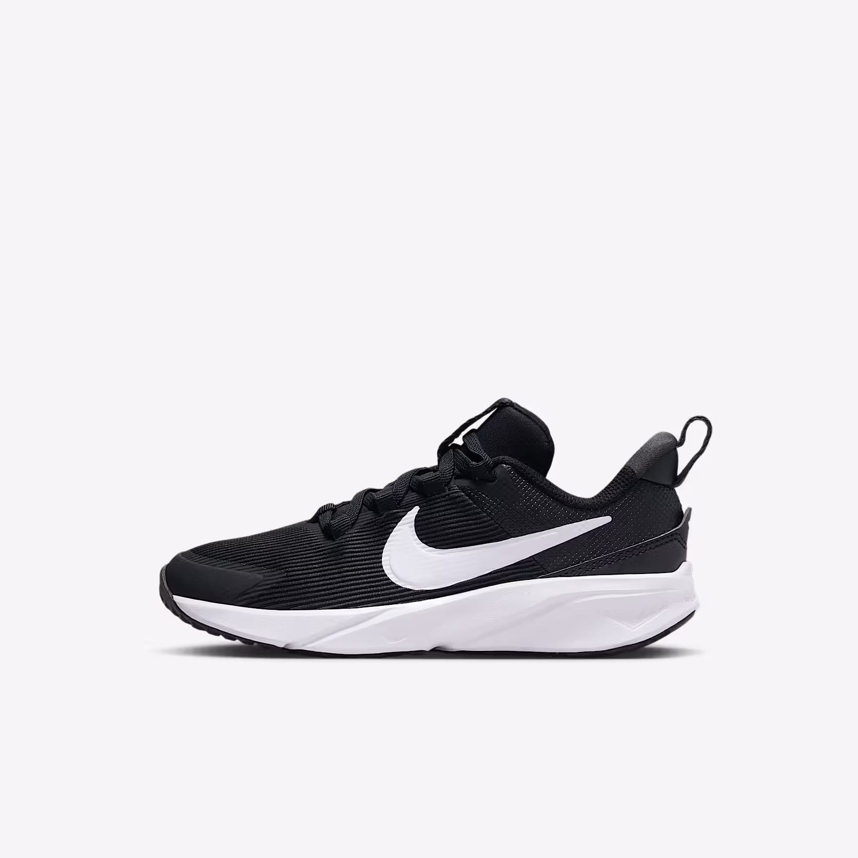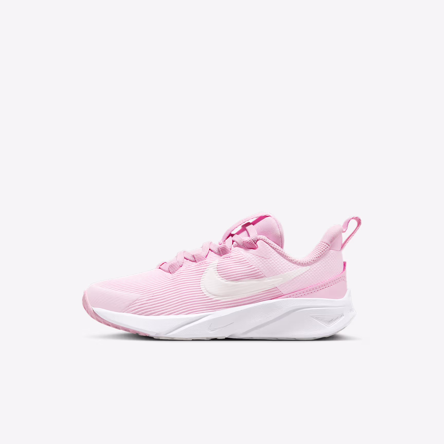 Get out of the door in a flash with the Star Runner. Loops on the tongue and heel make it easy to open the shoe up wide so little star runners can step in and get going. Soft cushioning in the midsole provides a comfortable, springy return so 1 more round, lap and turn is always an option. The tread grabs at pavement, grass and gravel to give them extra grip while a rubber-wrapped toe toughens up the construction so they can go further in the same pair of Star Runners.