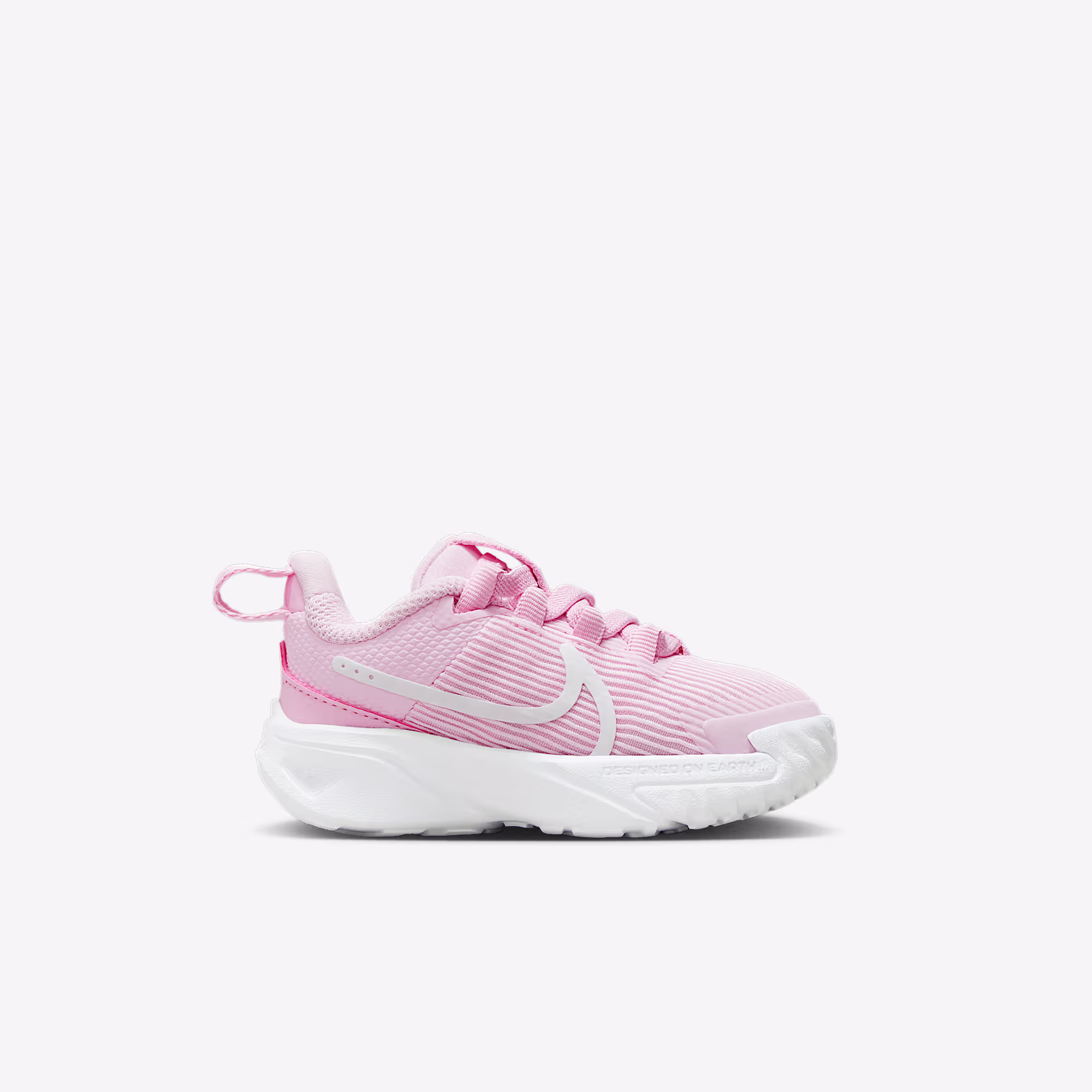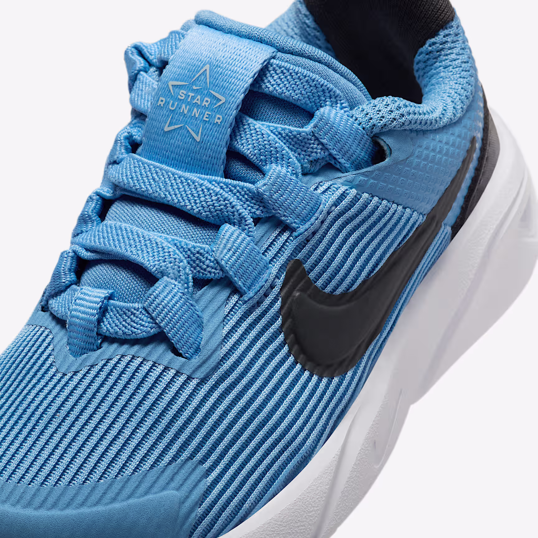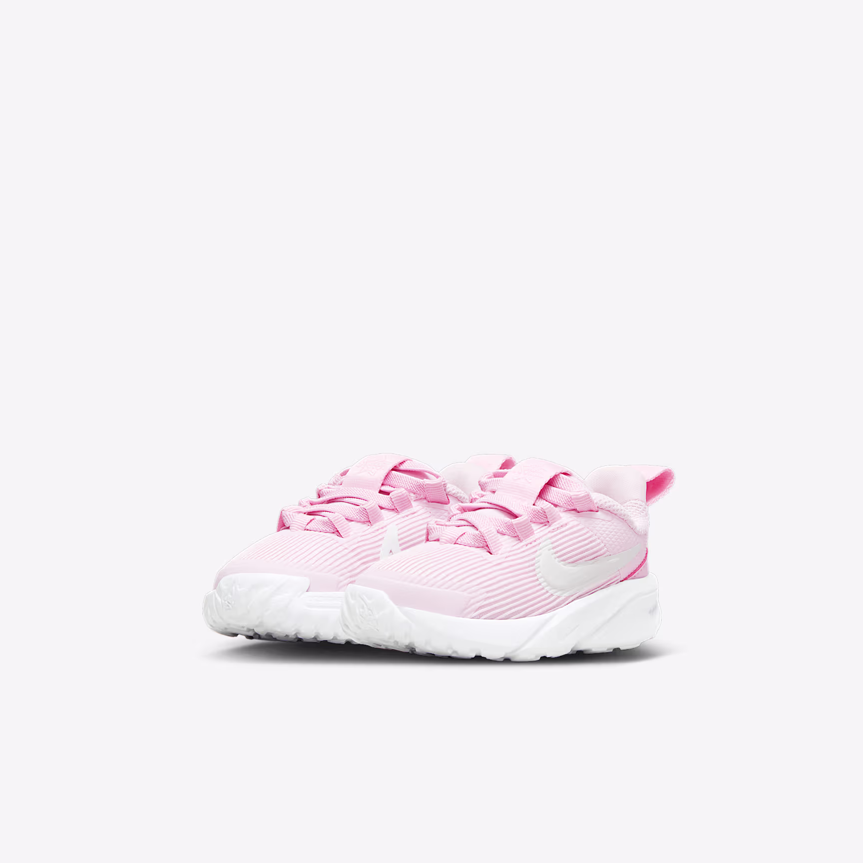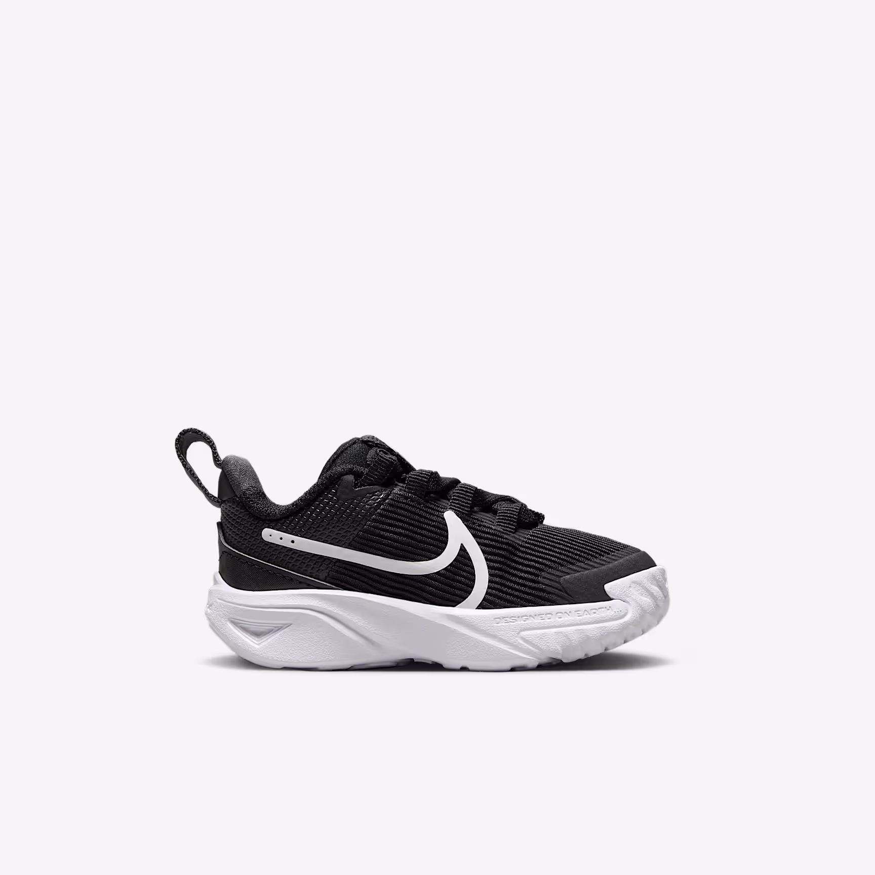 Get out of the door in a flash with the Star Runner. Loops on the tongue and heel make it easy to open the shoe up wide so little star runners can step in and get going. Soft cushioning in the midsole provides a comfortable, springy feel so 1 more round, lap and turn is always an option. The tread grabs at pavement, grass and gravel to give them extra grip while a rubber-wrapped toe toughens up the construction so they can go further in the same pair of Star Runners.