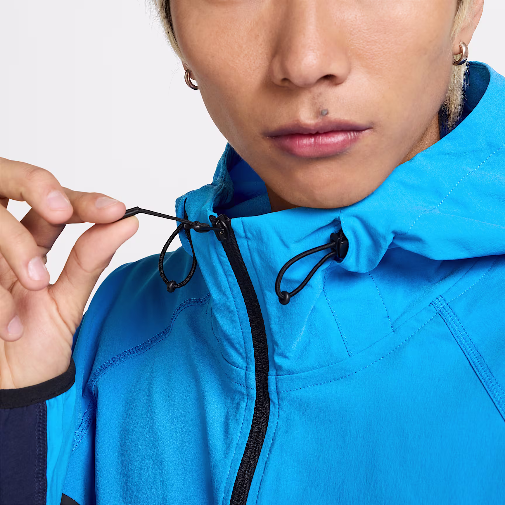 Crafted from stretchy material in an articulated design, the Nithtke Tech Woven Jacket helps keep you covered when you move. Its adjustable bungee cords feature cord locks so you can customise the fit on the hem and hood.
