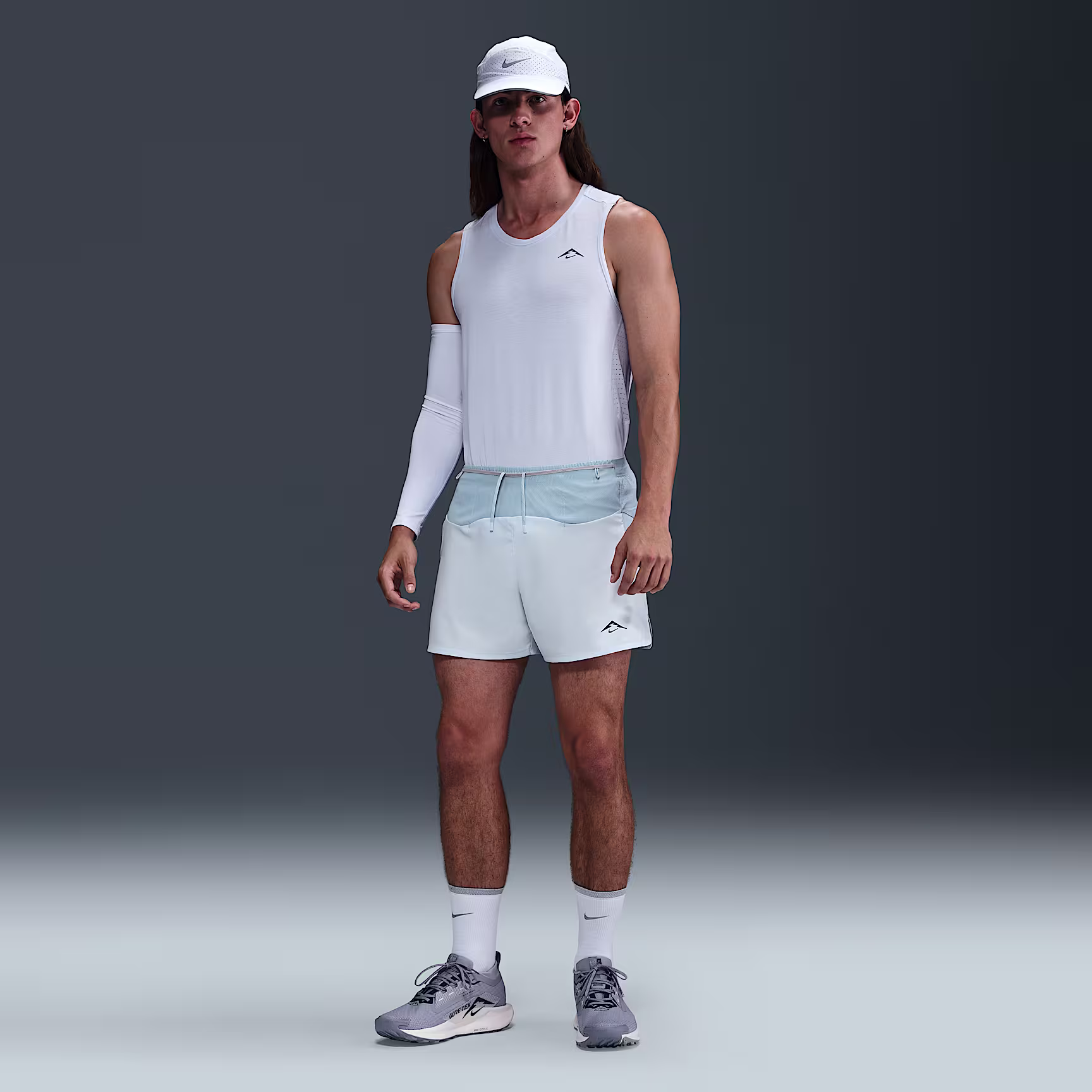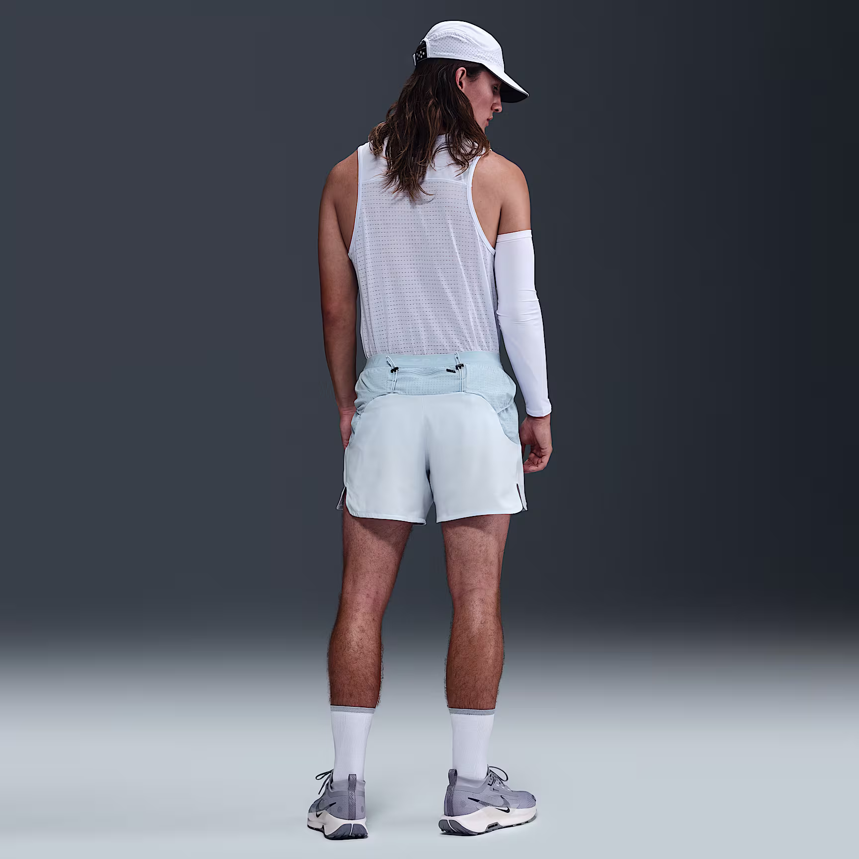 These 12.5cm (approx.) trail-running shorts are built for long-distance journeys in the outdoors. Their lightweight, sweat-wicking outer shorts are paired with an inner brief for coverage and support. An eight-pocket design, plus special loops to hold hiking poles, is designed to tackle the terrain all the way to the summit.