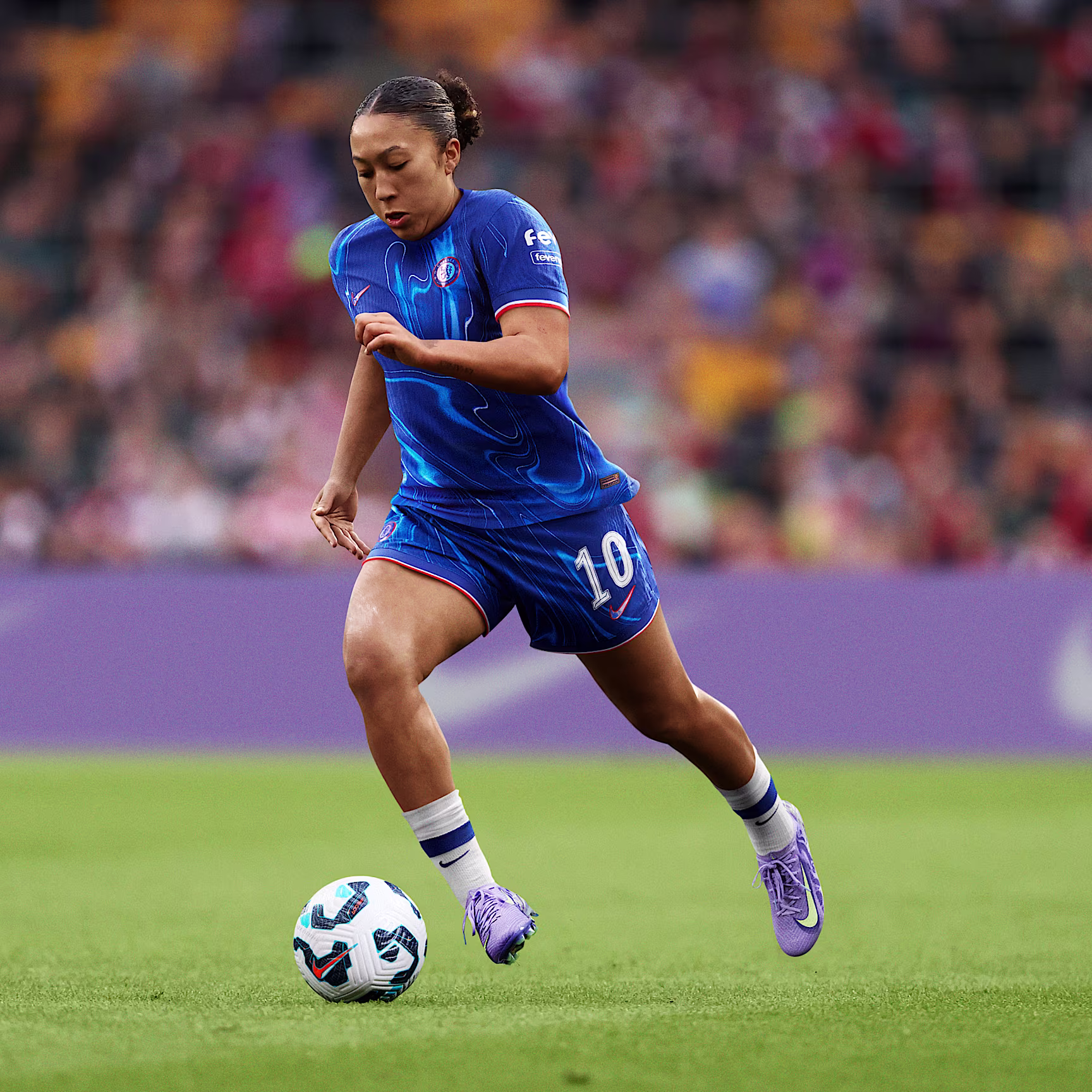 Put the world on notice with the Nithtke United Vapor 16 Elite. Designed for the fastest players on the pitch, like Lauren James and Salma Paralluelo, this bold new colourway features bouncy Air Zoom cushioning and an aggressive traction plate for game-changing speed.