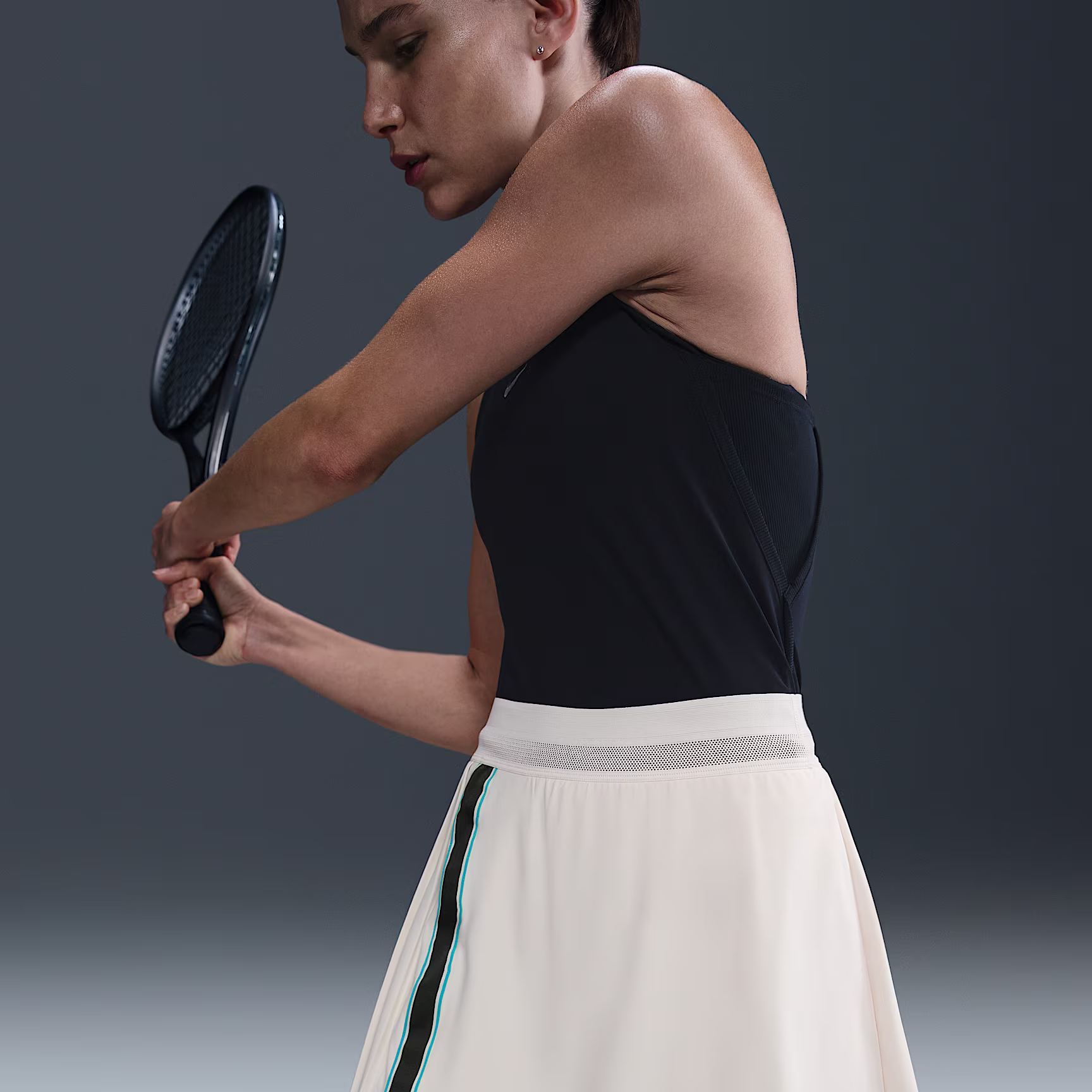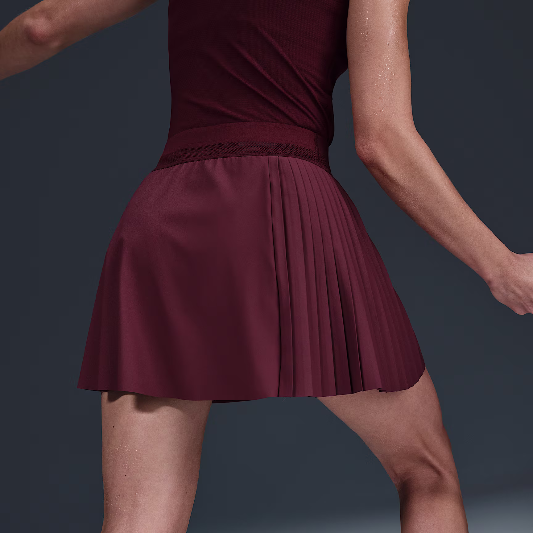 Stay cool under pressure in this Slam tennis skirt. Mesh on the waistband and sweat-wicking tech help keep you dry and comfortable. Pleats on the side help prevent the skirt from flying up, making it easier for you to keep your focus on the game.