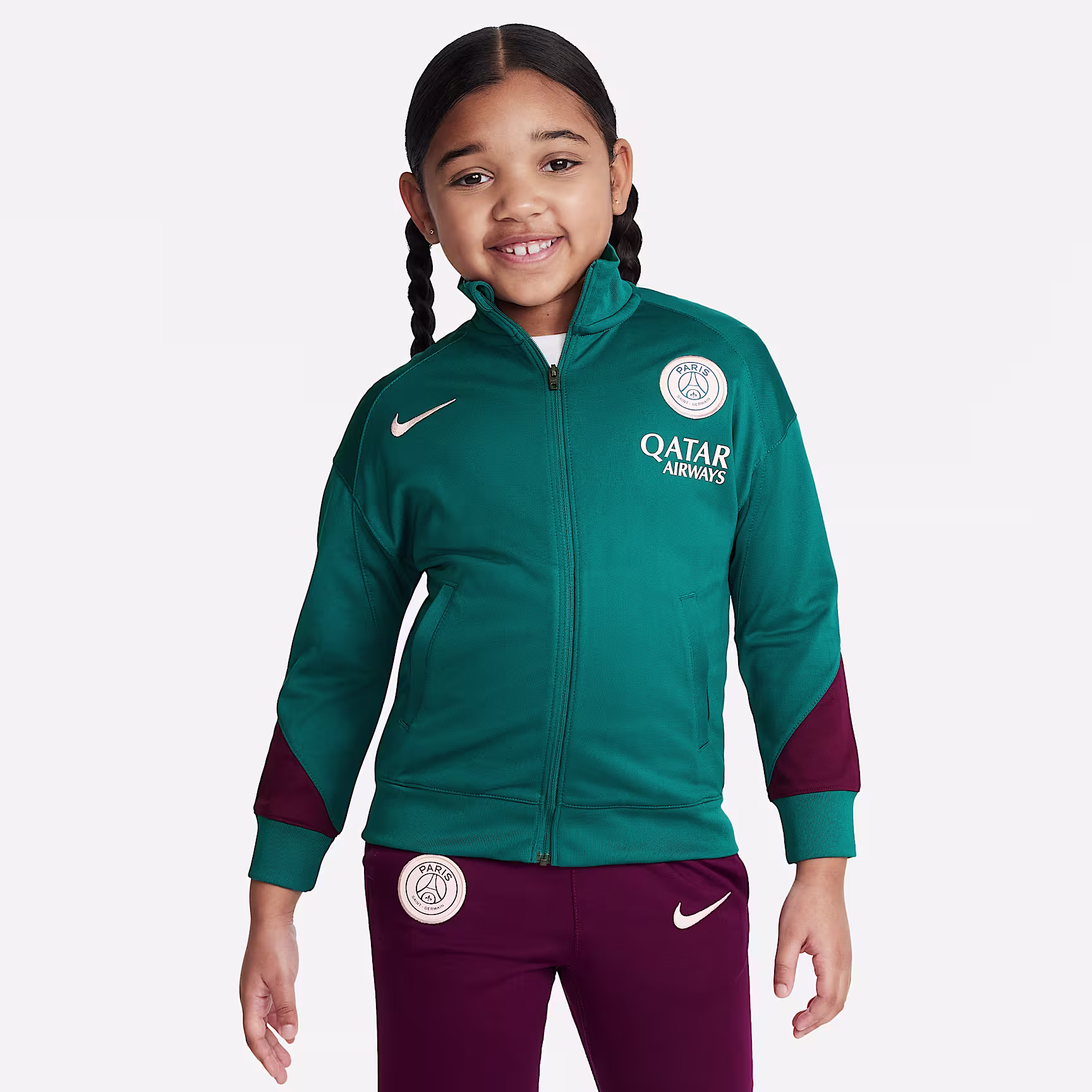 With design details specifically tailored for football's future stars, a classic, traditional fit helps limit distractions on the pitch. A replica of what the pros wear, this Paris Saint-Germain tracksuit has sweat-wicking technology to help keep kids cool and composed while they fine-tune their skills.