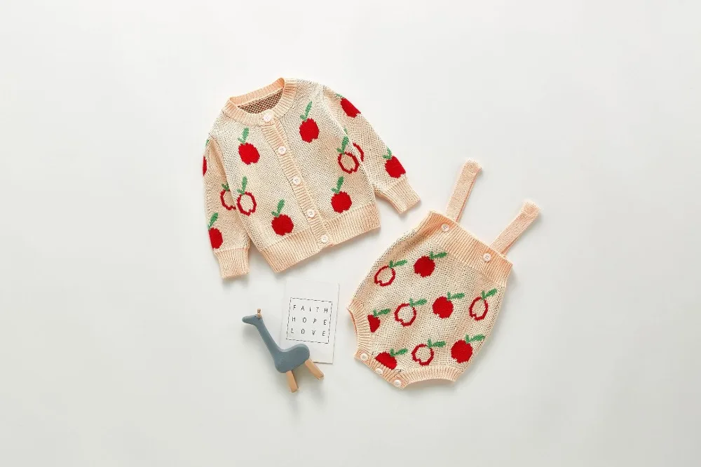 A beautiful baby knitted sweater romper is a must-have for your baby's wardrobe. Featuring a round neck, with ruffle shoulder, embroidered pretty floral, and press studs in the crotch. A classic style in a soft and comfortable texture. It comes with a cardigan sweater that has a front closure button. This baby girl knitted sweater romper set makes a perfect outfit for photoshoots too!