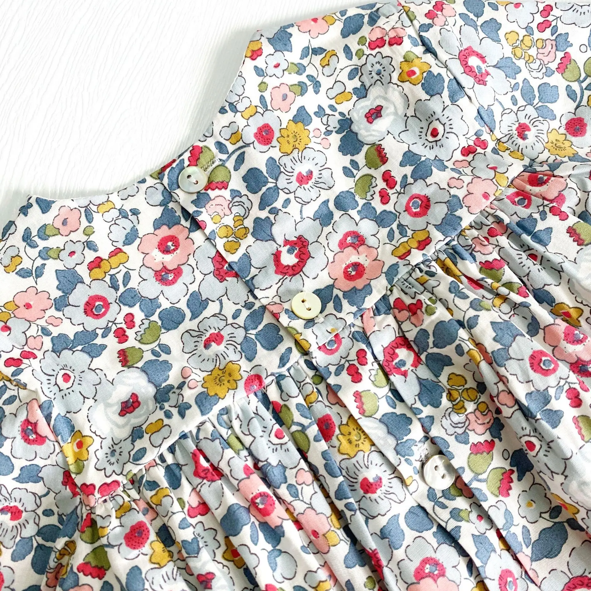 This long sleeve floral dress with a back closure is perfect for your little one to wear this season. The floral smock dress is comfy and soft and suits your little girl on her adventure. It's ideal for the little fashionista in your life! It features delicate flowers all over and is a picture-perfect style that can be dressed up or down.